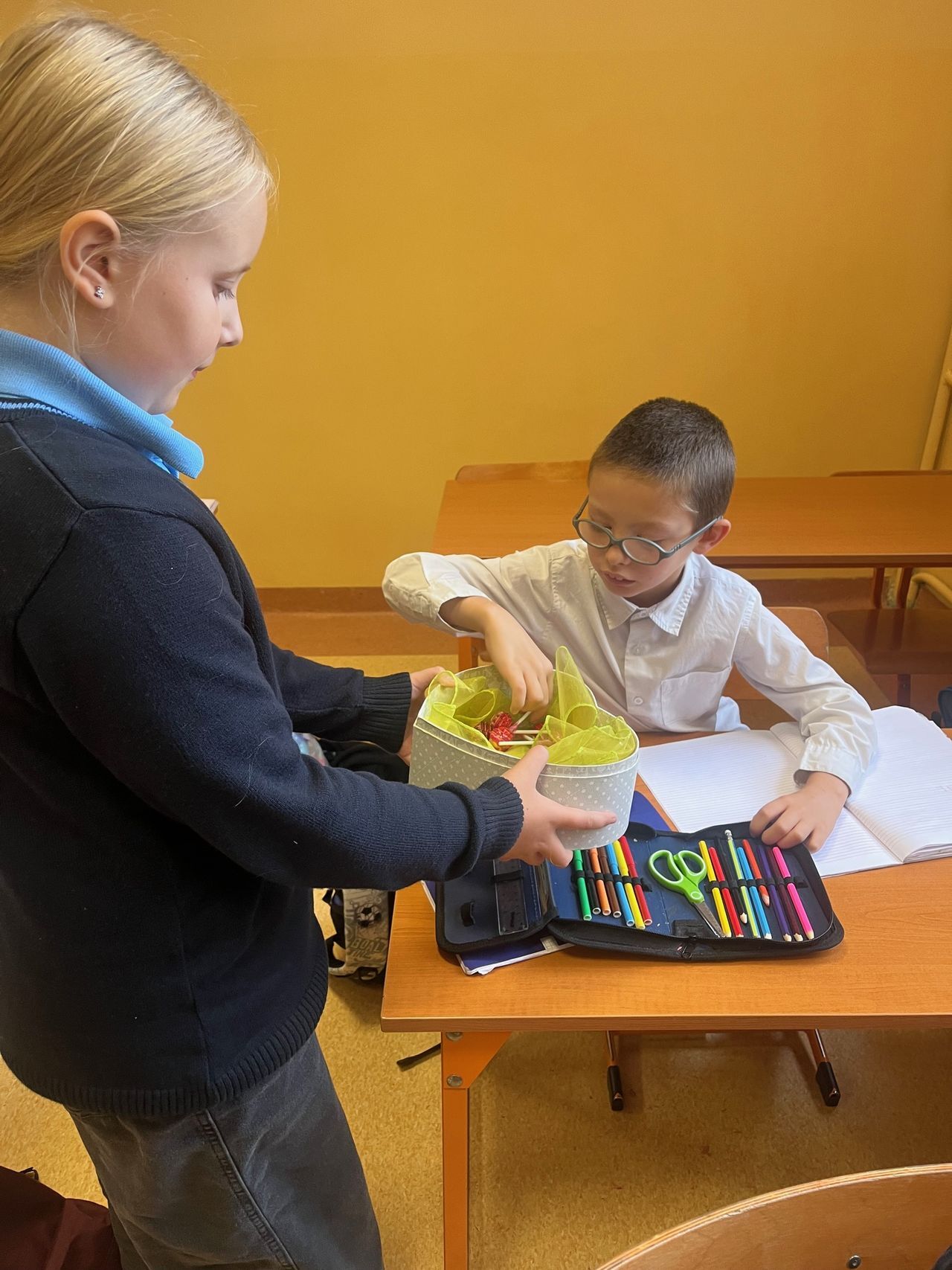 Dziewczyny przygotowały dla chłopców drobne upominki i słodkości, które wywołały wiele uśmiechów. Nie zabrakło również życzeń, kolorowych kartek i miłych gestów. Przerwy umilała wszystkim muzyka zachęcająca do zabawy. Wywołało to sporo radości i pozytywnej energii.