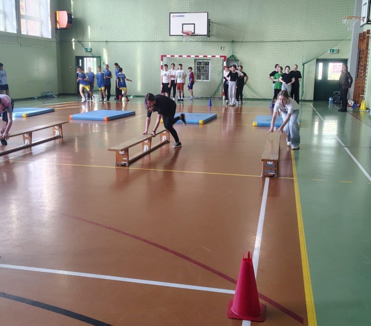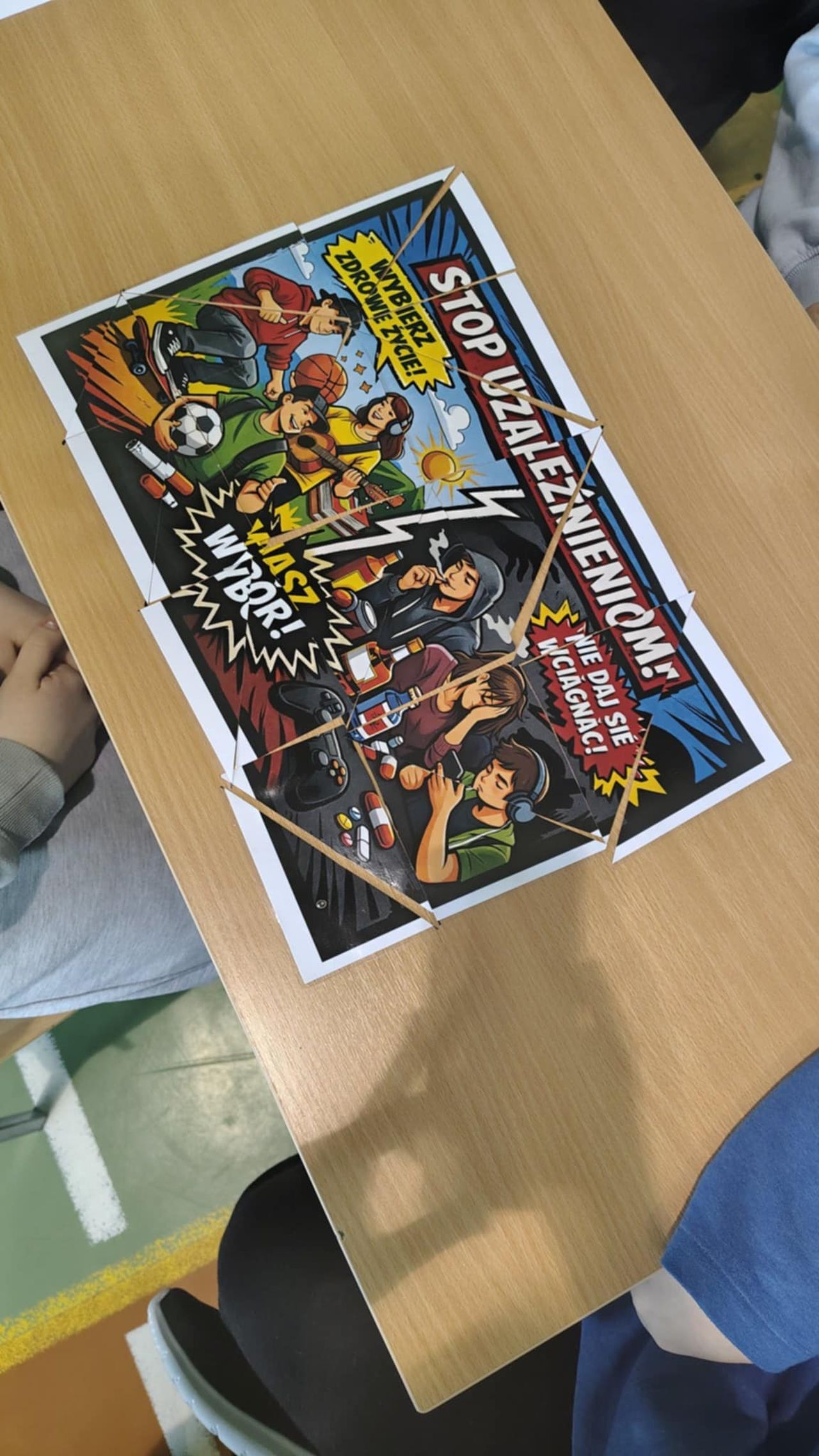 Konkurs składał się z dwóch części. W pierwszej, testowej, uczniowie pracowali zespołowo, rozwiązując jeden wspólny test z zakresu profilaktyki uzależnień. Musieli również rozkodować przygotowany szyfr oraz ułożyć tematyczne puzzle. Zadania wymagały nie tylko wiedzy, ale także współpracy, logicznego myślenia i dobrej organizacji pracy w grupie. Druga część miała charakter sprawnościowy – uczestnicy wykonywali różnorodne zadania ruchowe, które dostarczyły wielu emocji i pokazały, że aktywność fizyczna jest świetną alternatywą dla niezdrowych zachowań.