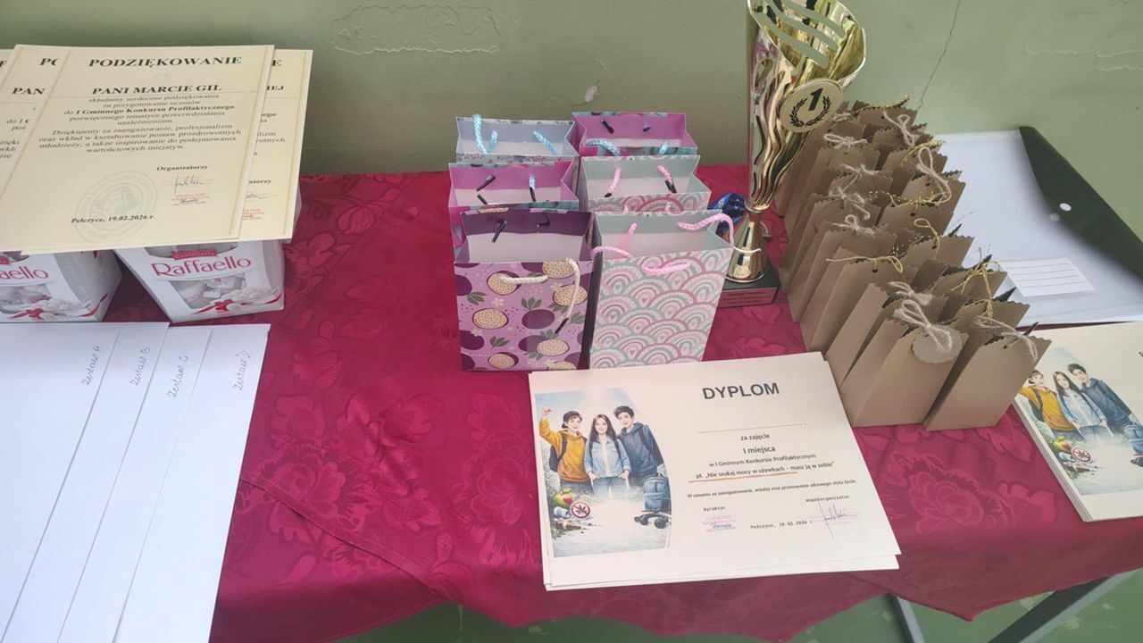 19 lutego w Szkole Podstawowej w Pełczycach odbył się Gminny Konkurs Profilaktyczny pod hasłem „Nie szukaj mocy w używkach – masz ją w sobie”. Wydarzenie zostało zorganizowane we współpracy z Gminną Komisją Rozwiązywania Problemów Alkoholowych w Pełczycach i miało na celu promowanie zdrowego stylu życia oraz uświadamianie młodzieży, że prawdziwa siła tkwi w nich samych, a nie w sięganiu po używki.