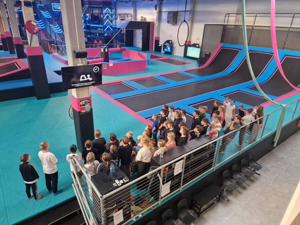 Na początku odwiedzili park trampolin, gdzie mogli aktywnie spędzić czas: skacząc, pokonując przeszkody i korzystając z licznych atrakcji sportowych. Po energicznej zabawie cała grupa udała się do kina, aby obejrzeć ciekawy film animowany, który dostarczył wielu emocji. Na zakończenie wszyscy zatrzymali się w McDonald’s, gdzie czekał zasłużony posiłek i chwila odpoczynku po pełnym atrakcji dniu.