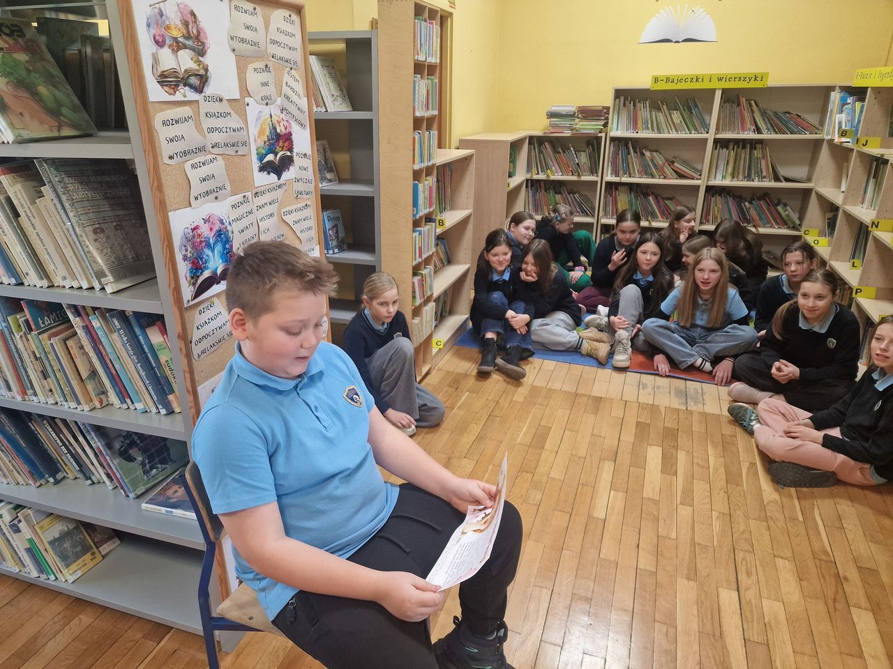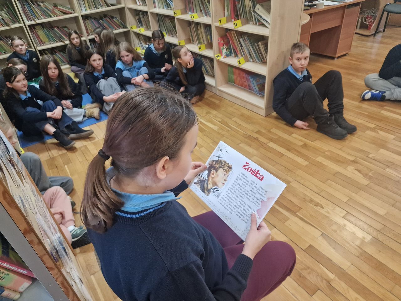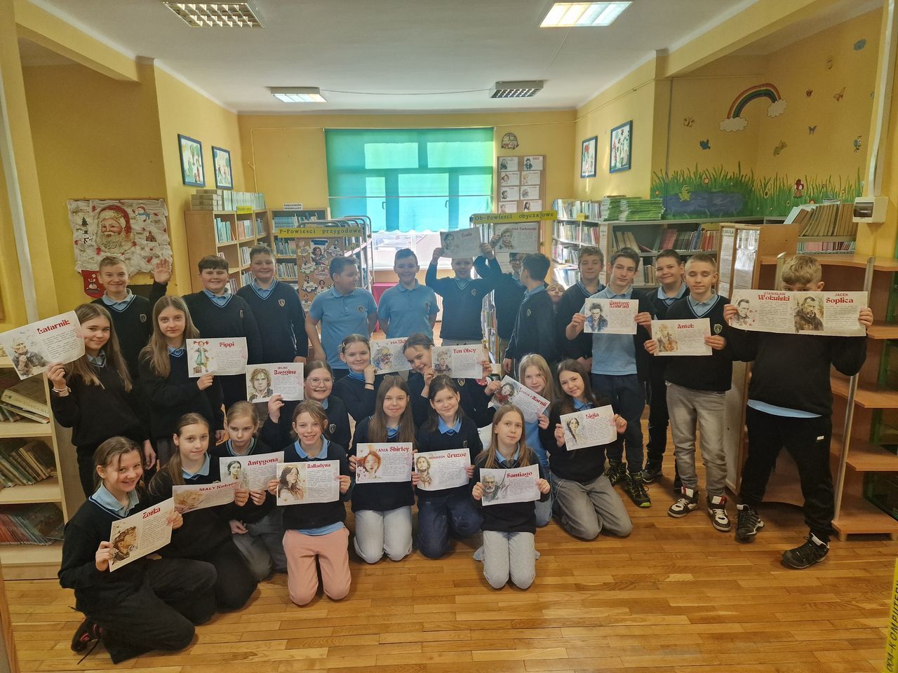 Na zakończenie I półrocza uczniowie klasy V wraz z wychowawcą, panią Daria Panowicz, uczestniczyli w lekcji bibliotecznej poświęconej bohaterom lektur szkolnych. Podczas spotkania dzieci przypomniały sobie postacie znane z lektur, które, swoimi postawami uczą wrażliwości, odwagi, wytrwałości i wiary w siebie. Uczniowie poznali piękne sentencje oraz wartości, jakie płyną z literatury, i przekonali się, że każda historia niesie ze sobą ważne życiowe przesłanie. Lekcja przebiegła w ciepłej, przyjaznej atmosferze i była doskonałym wstępem do szkolnej gazetki, zachęcającej do czytania i odkrywania świata książek.