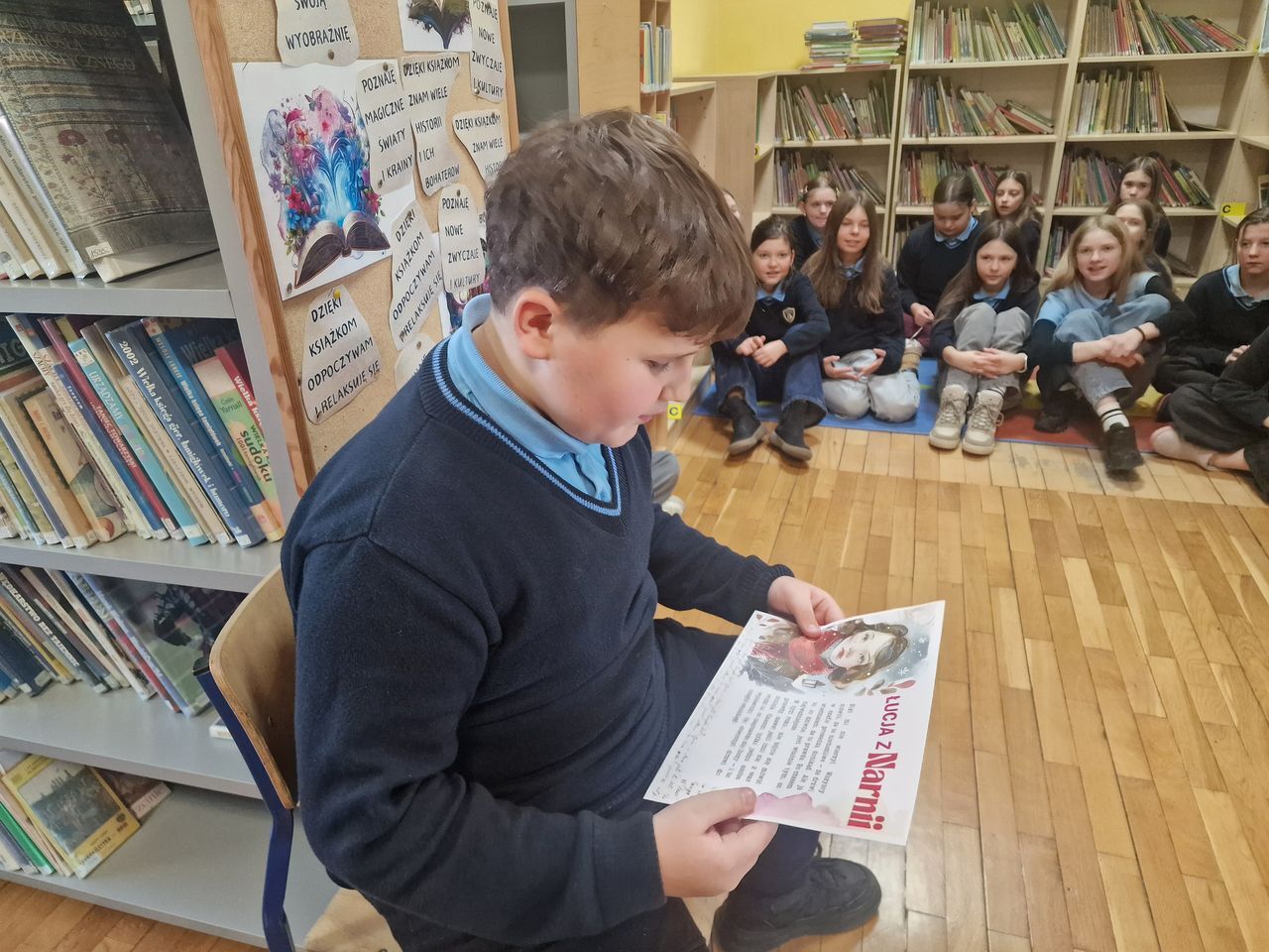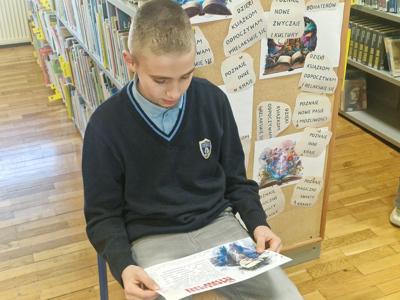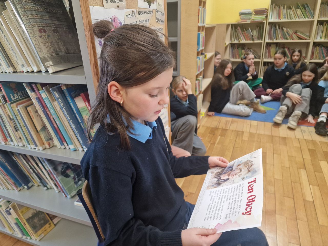 Na zakończenie I półrocza uczniowie klasy V wraz z wychowawcą, panią Daria Panowicz, uczestniczyli w lekcji bibliotecznej poświęconej bohaterom lektur szkolnych. Podczas spotkania dzieci przypomniały sobie postacie znane z lektur, które, swoimi postawami uczą wrażliwości, odwagi, wytrwałości i wiary w siebie. Uczniowie poznali piękne sentencje oraz wartości, jakie płyną z literatury, i przekonali się, że każda historia niesie ze sobą ważne życiowe przesłanie. Lekcja przebiegła w ciepłej, przyjaznej atmosferze i była doskonałym wstępem do szkolnej gazetki, zachęcającej do czytania i odkrywania świata książek.