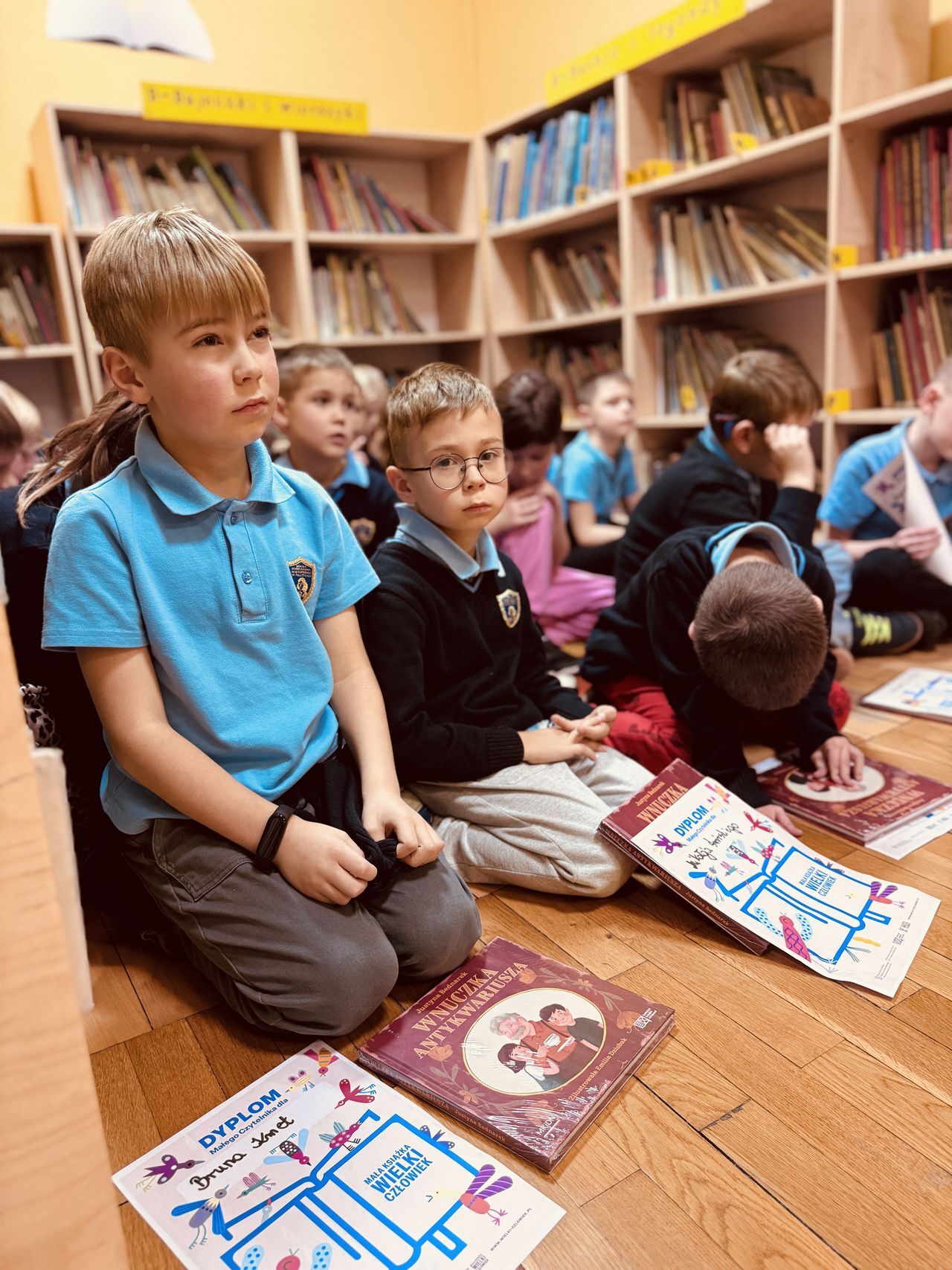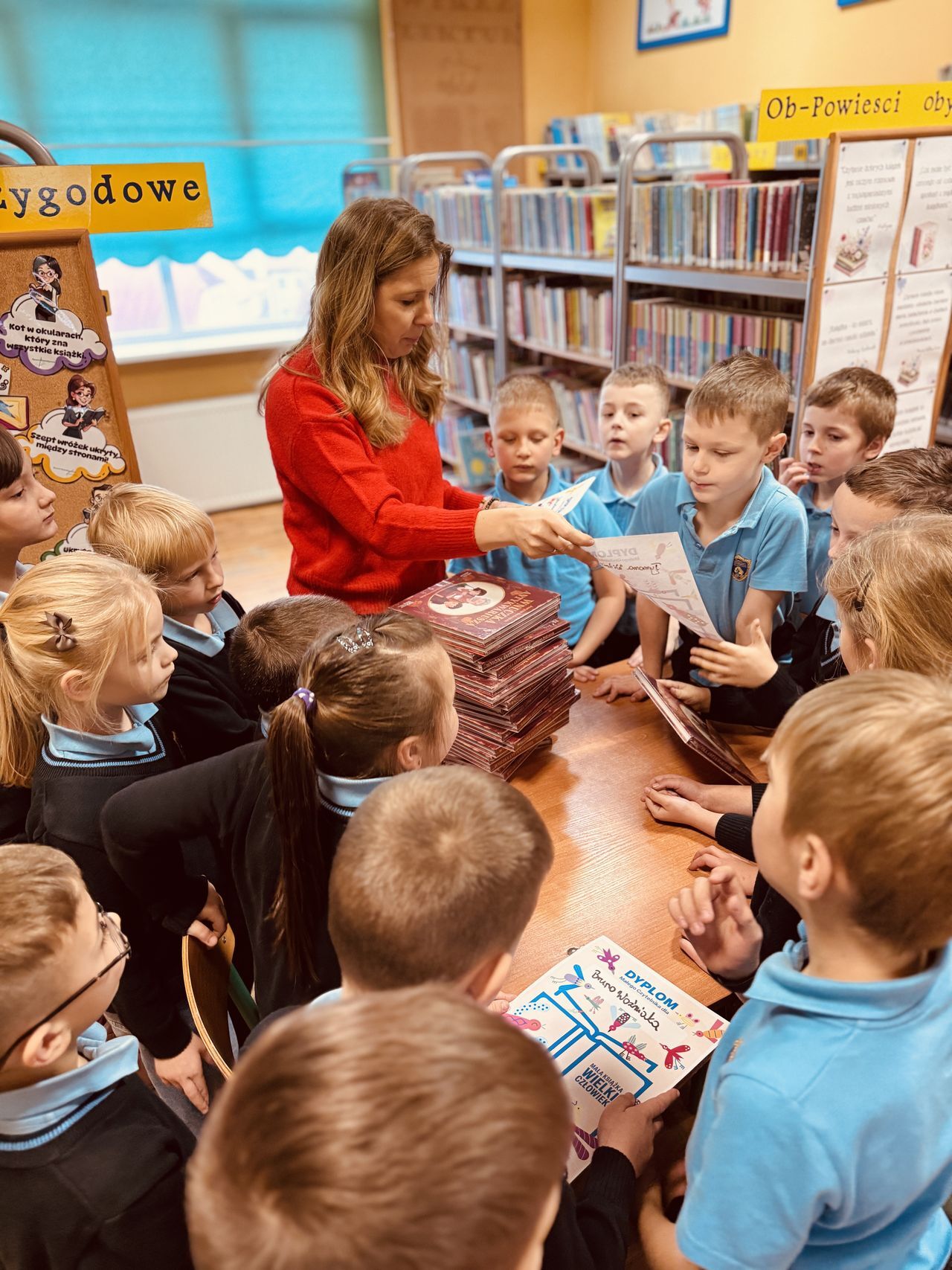 W naszej szkolnej bibliotece odbyło się dziś wyjątkowe spotkanie dla pierwszoklasistów. Uczniowie klasy pierwszej otrzymali książki przekazane przez Instytut Książki w ramach kolejnej edycji ogólnopolskiej kampanii „Mała książka – wielki człowiek”.