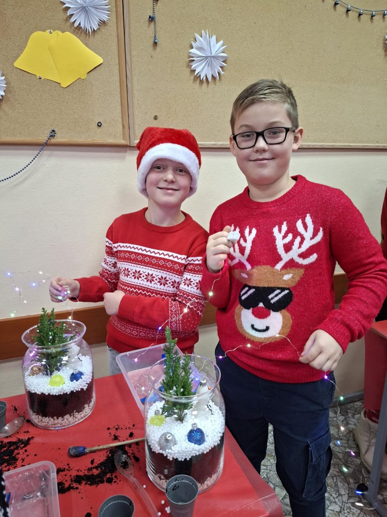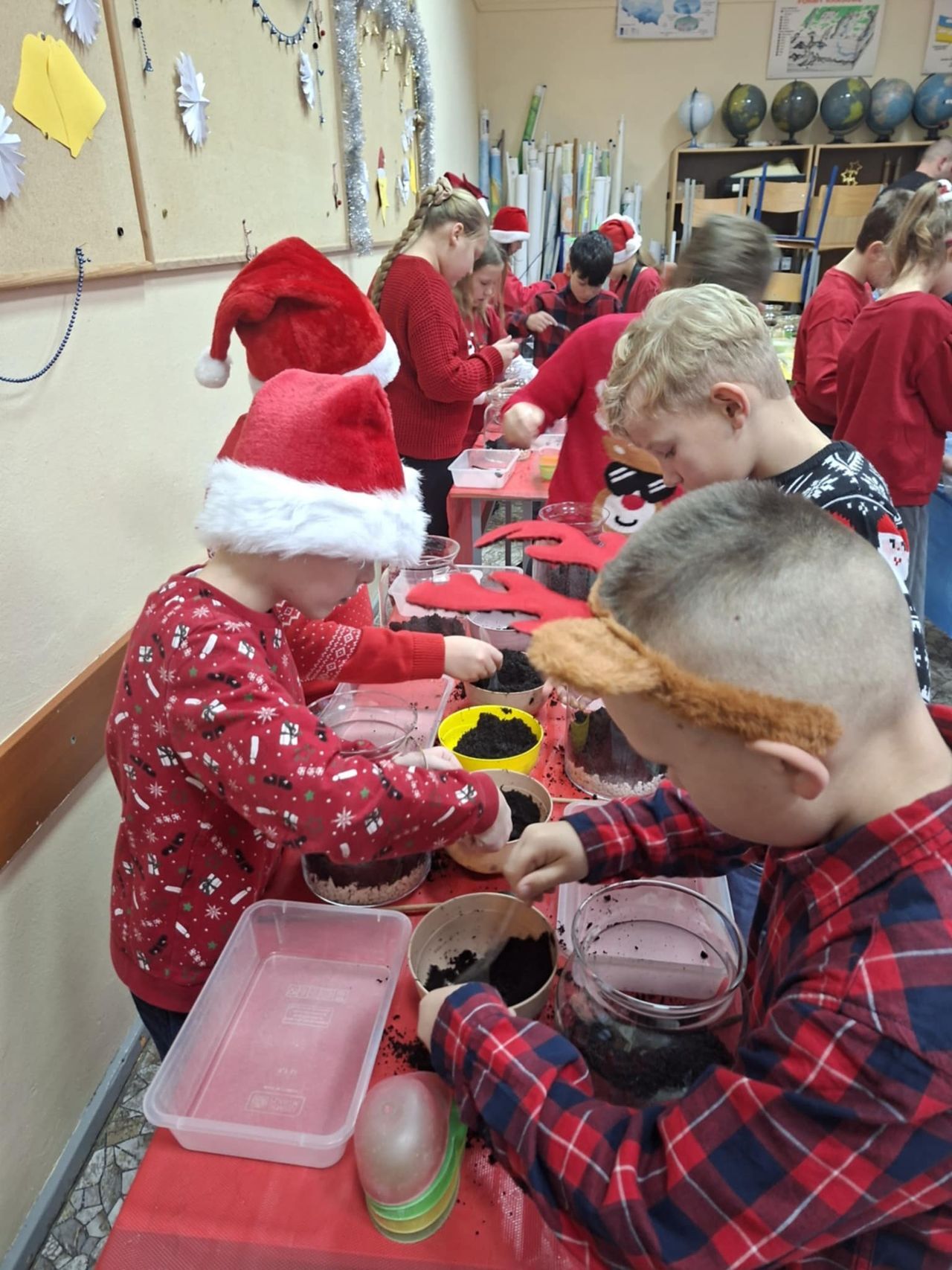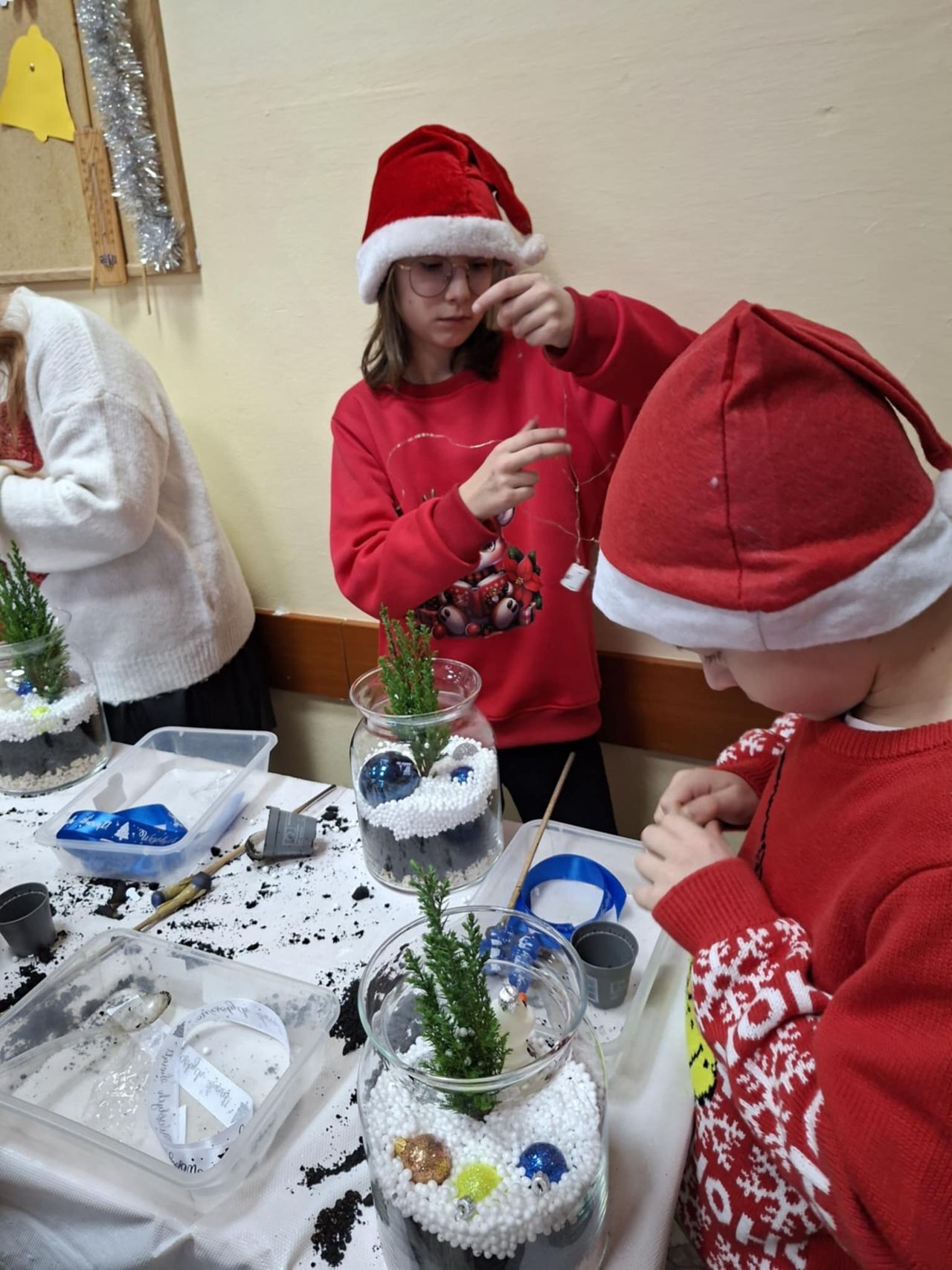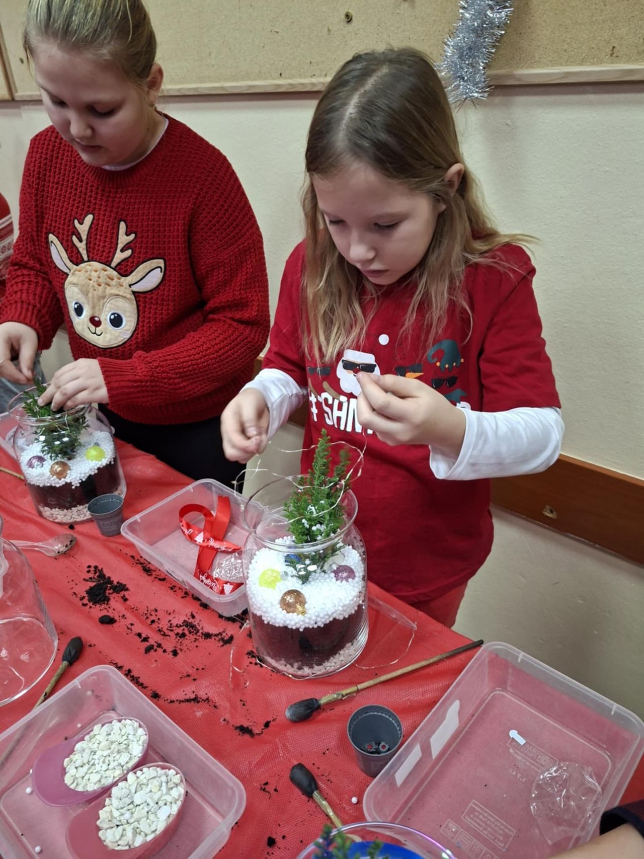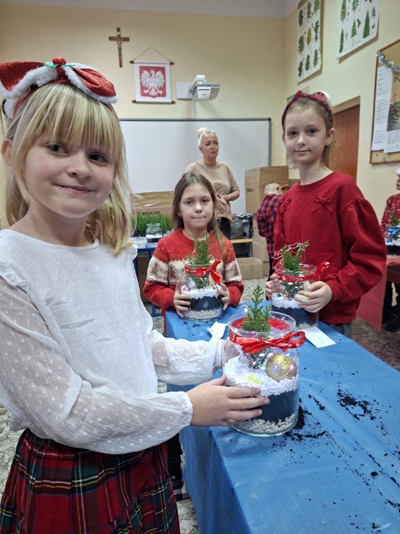 Ponadto najmłodsi uczniowie uczestniczyli w warsztatach świątecznych, samodzielnie wykonując piękne stroiki w szklanych słojach.
