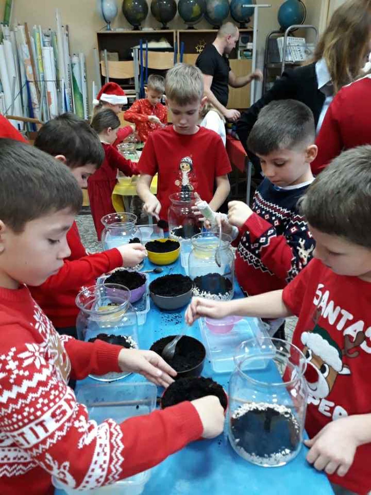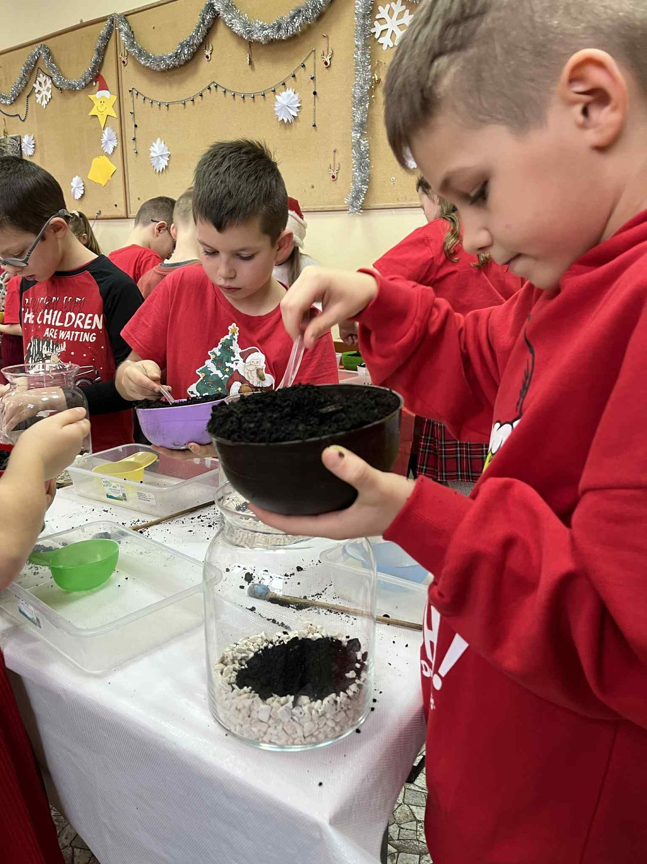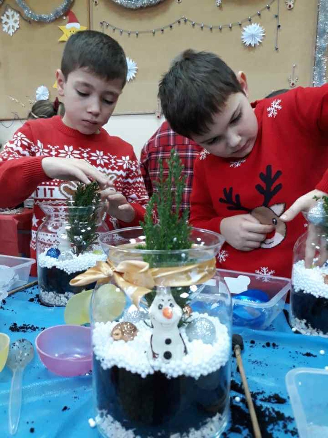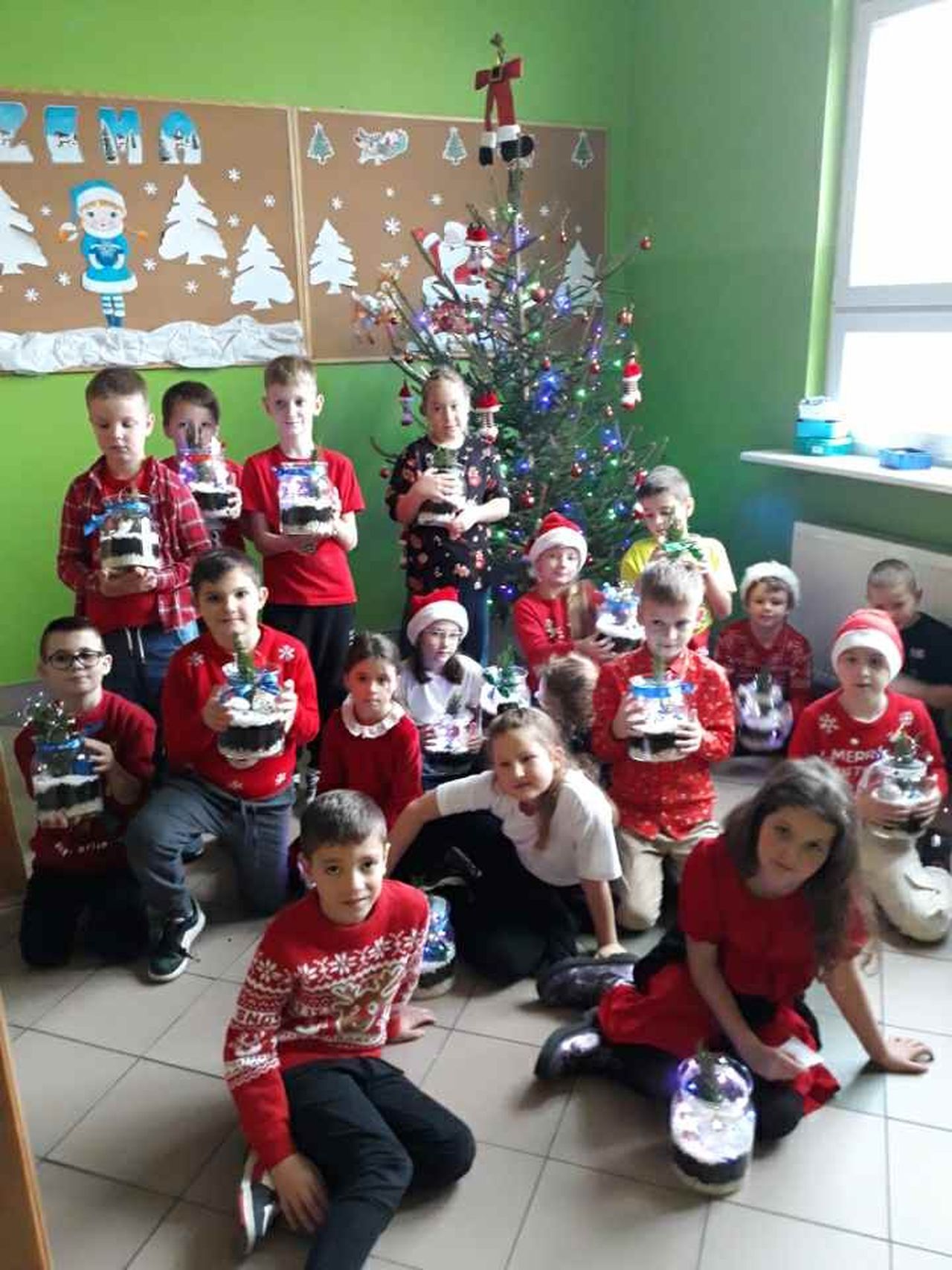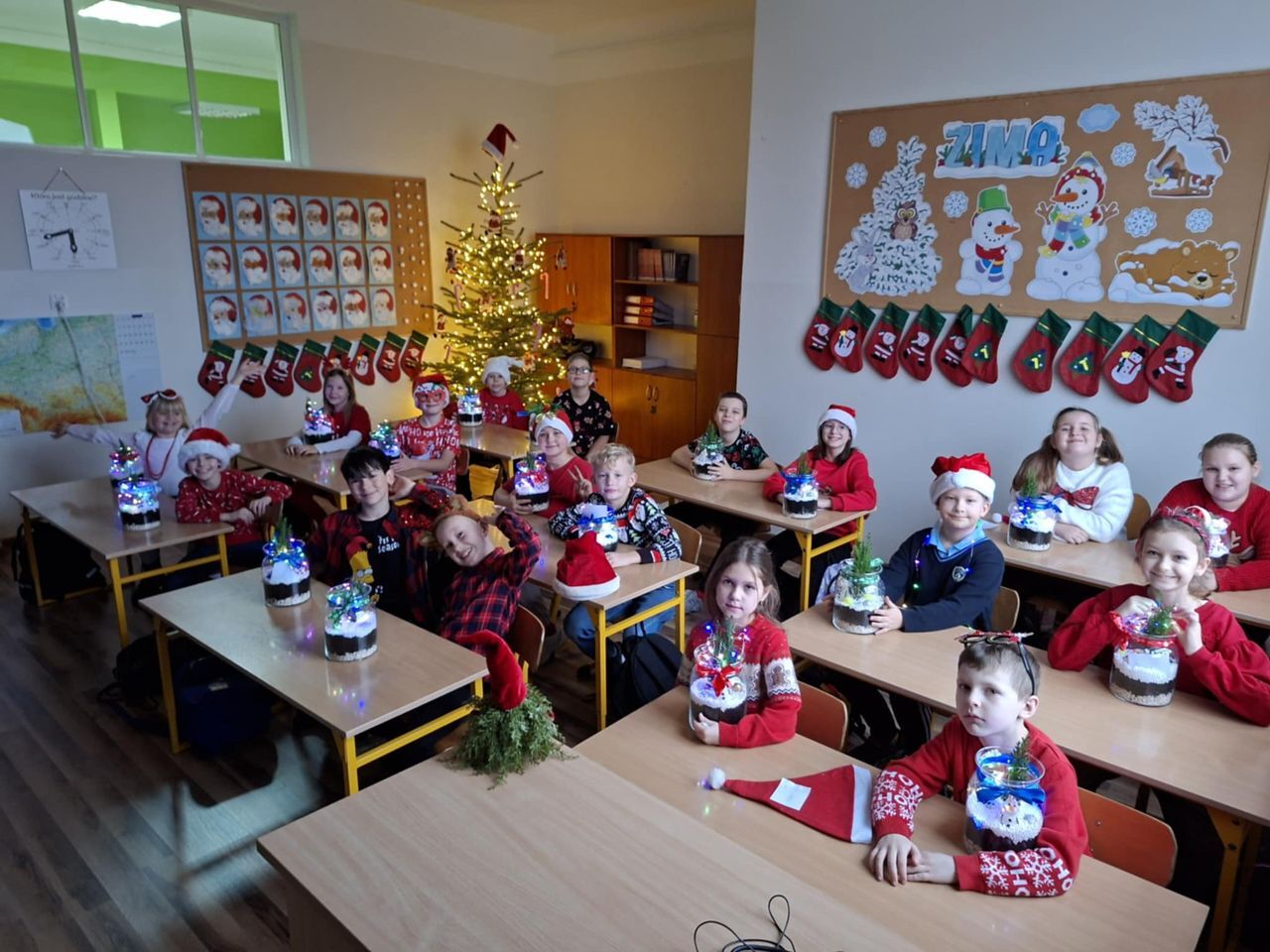 Ponadto najmłodsi uczniowie uczestniczyli w warsztatach świątecznych, samodzielnie wykonując piękne stroiki w szklanych słojach.