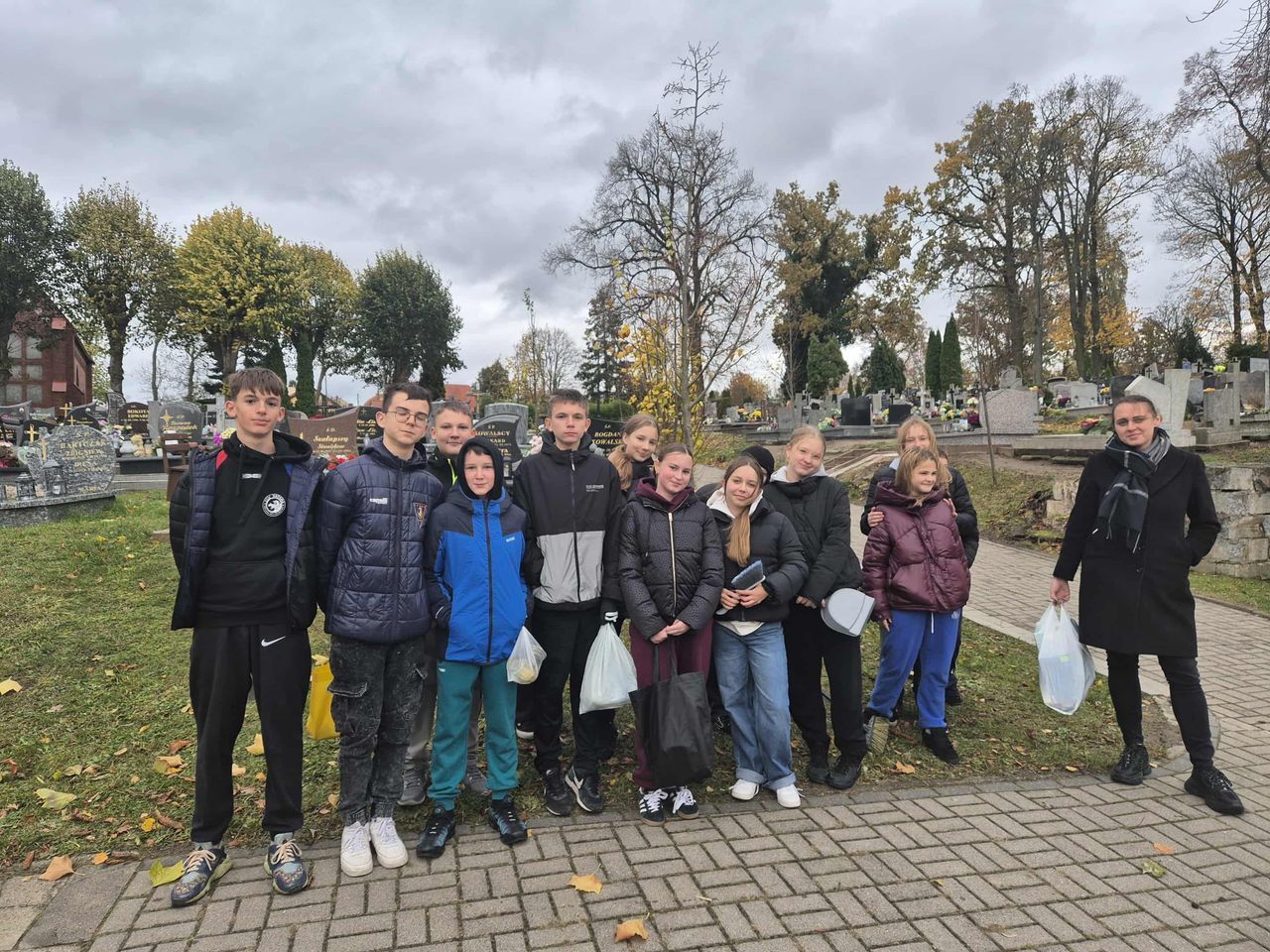 30 października Szkolne Koło Wolontariatu wyruszyło na pobliski cmentarz, by w ramach akcji „Pamiętamy i dbamy” uporządkować groby oraz teren wokół nich.
