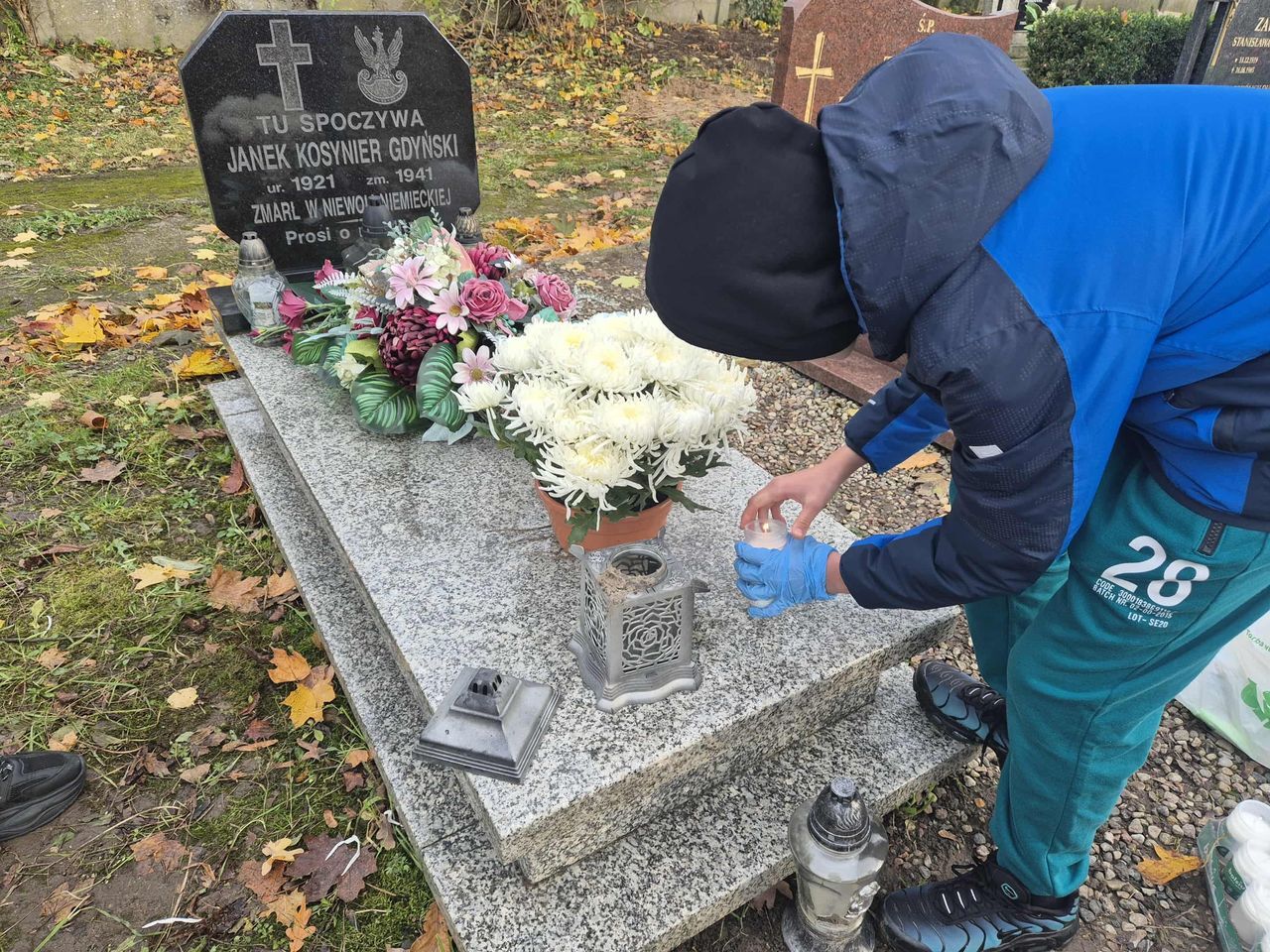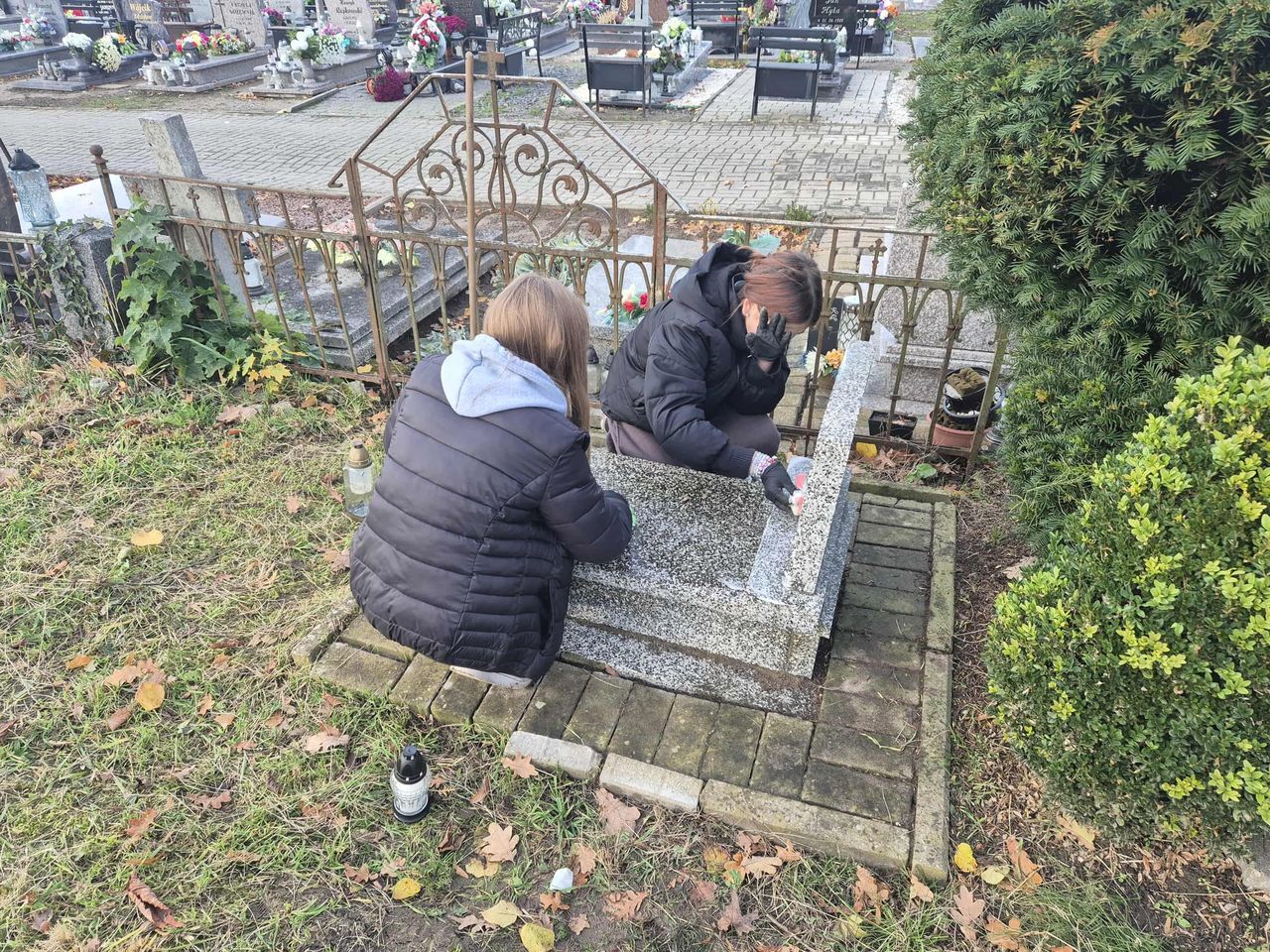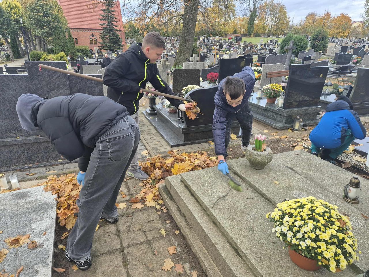 Uczniowie z zaangażowaniem grabili liście, porządkowali alejki i zapalali znicze na zapomnianych mogiłach. Wspólna praca była nie tylko okazją do pomocy, ale też chwilą refleksji nad pamięcią o tych, którzy odeszli.