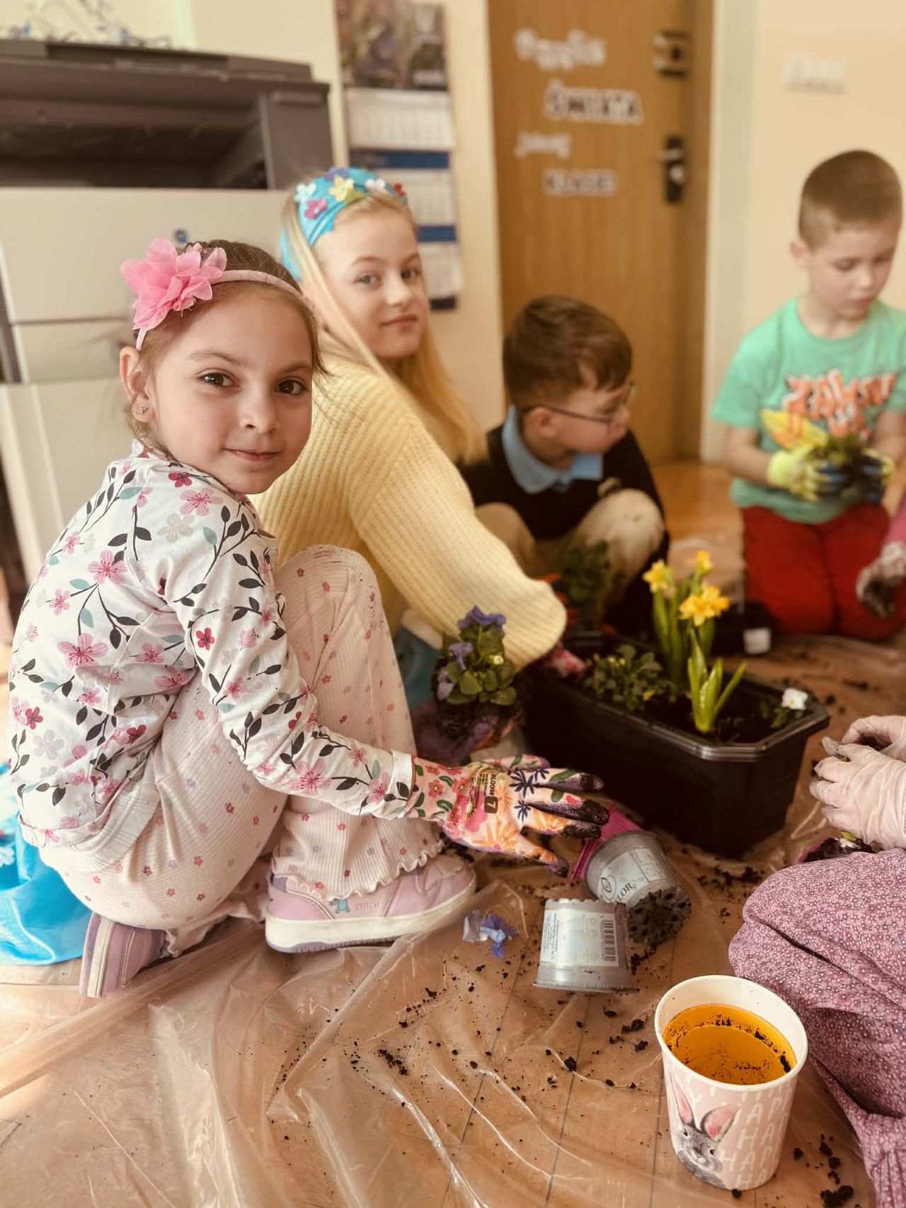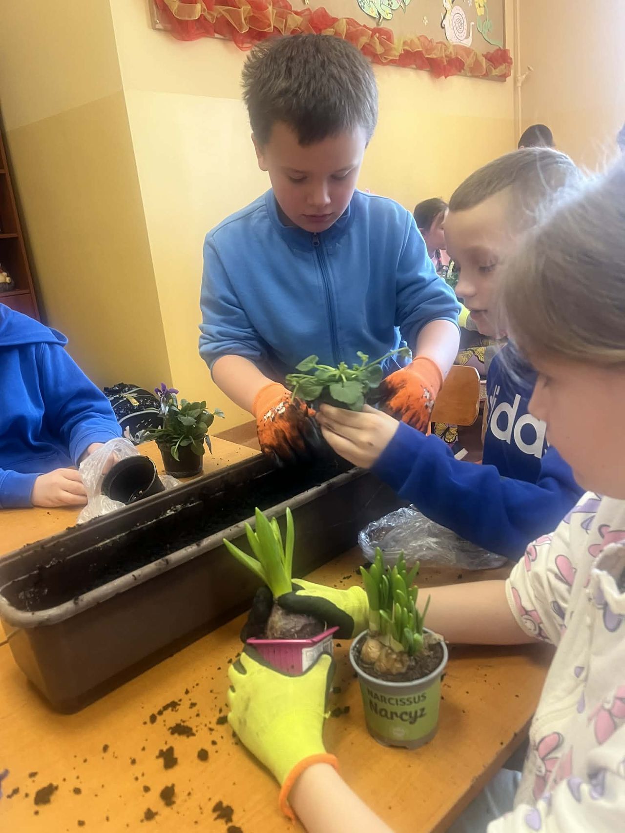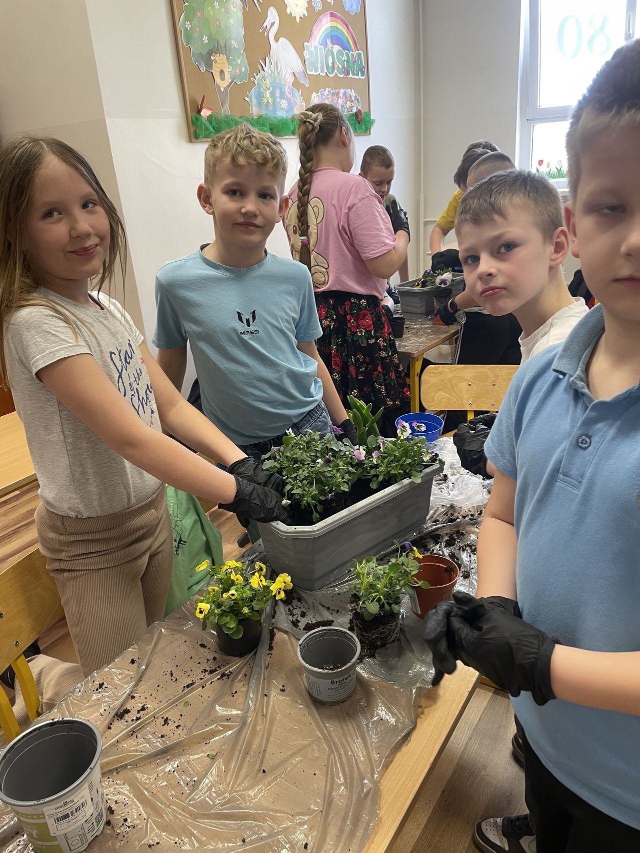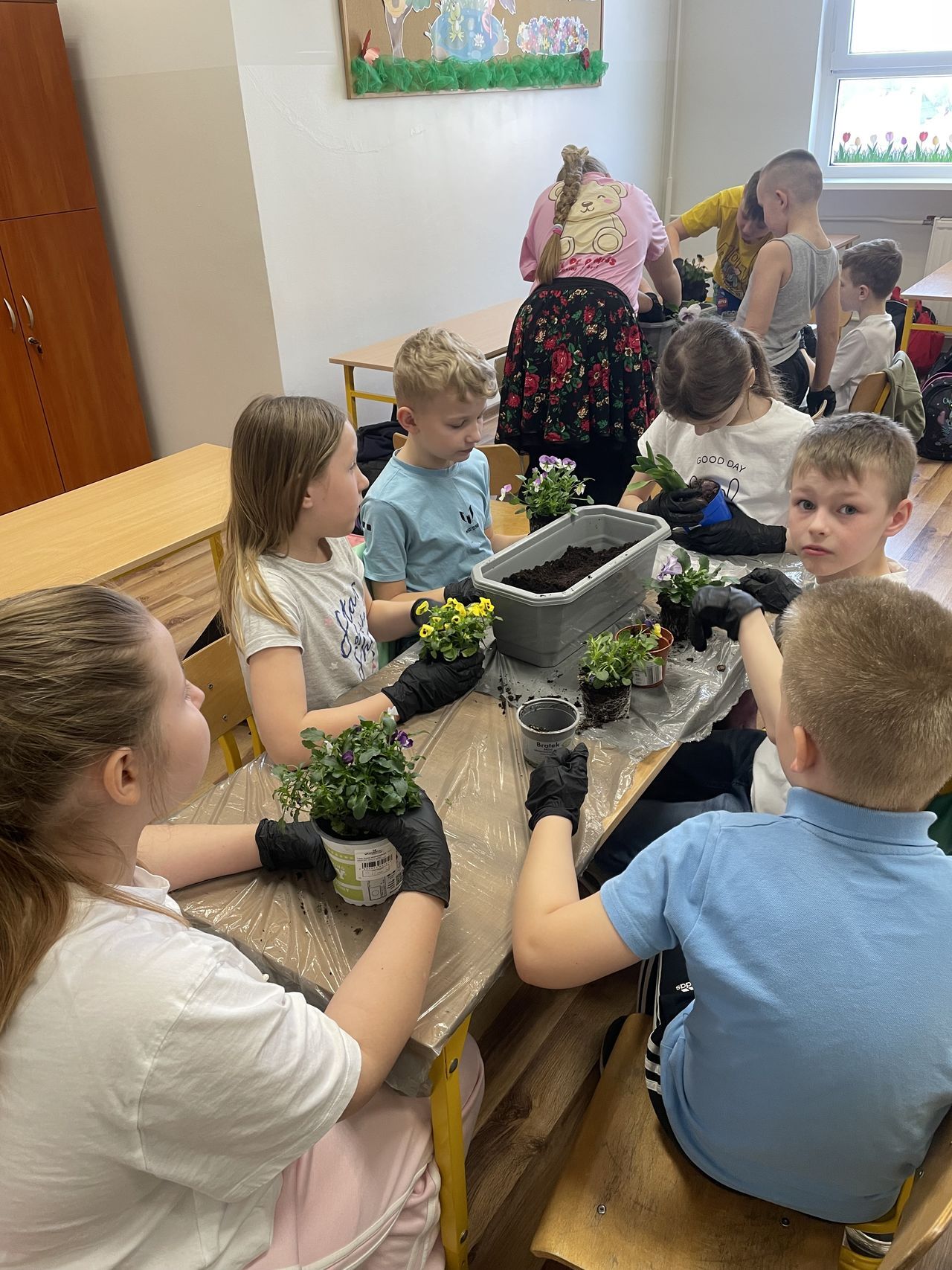 Obchody rozpoczęły się w klasach, gdzie dzieci z wielkim zaangażowaniem sadziły wiosenne kwiaty. Uczniowie poznawali zasady pielęgnacji roślin oraz uczyli się, jak dbać o przyrodę. Kolorowe doniczki i świeża zieleń wprowadziły do sal lekcyjnych prawdziwie wiosenny nastrój.