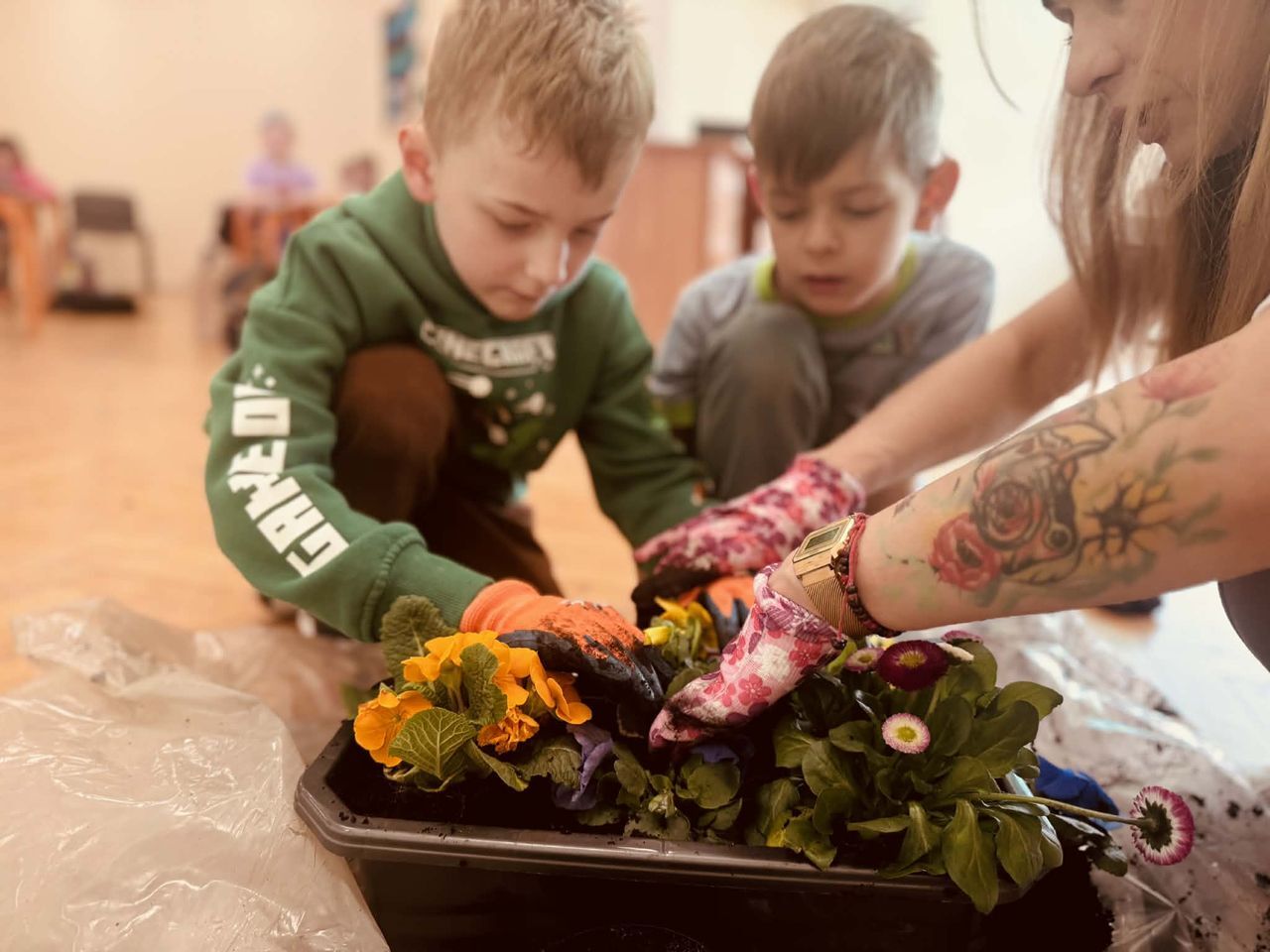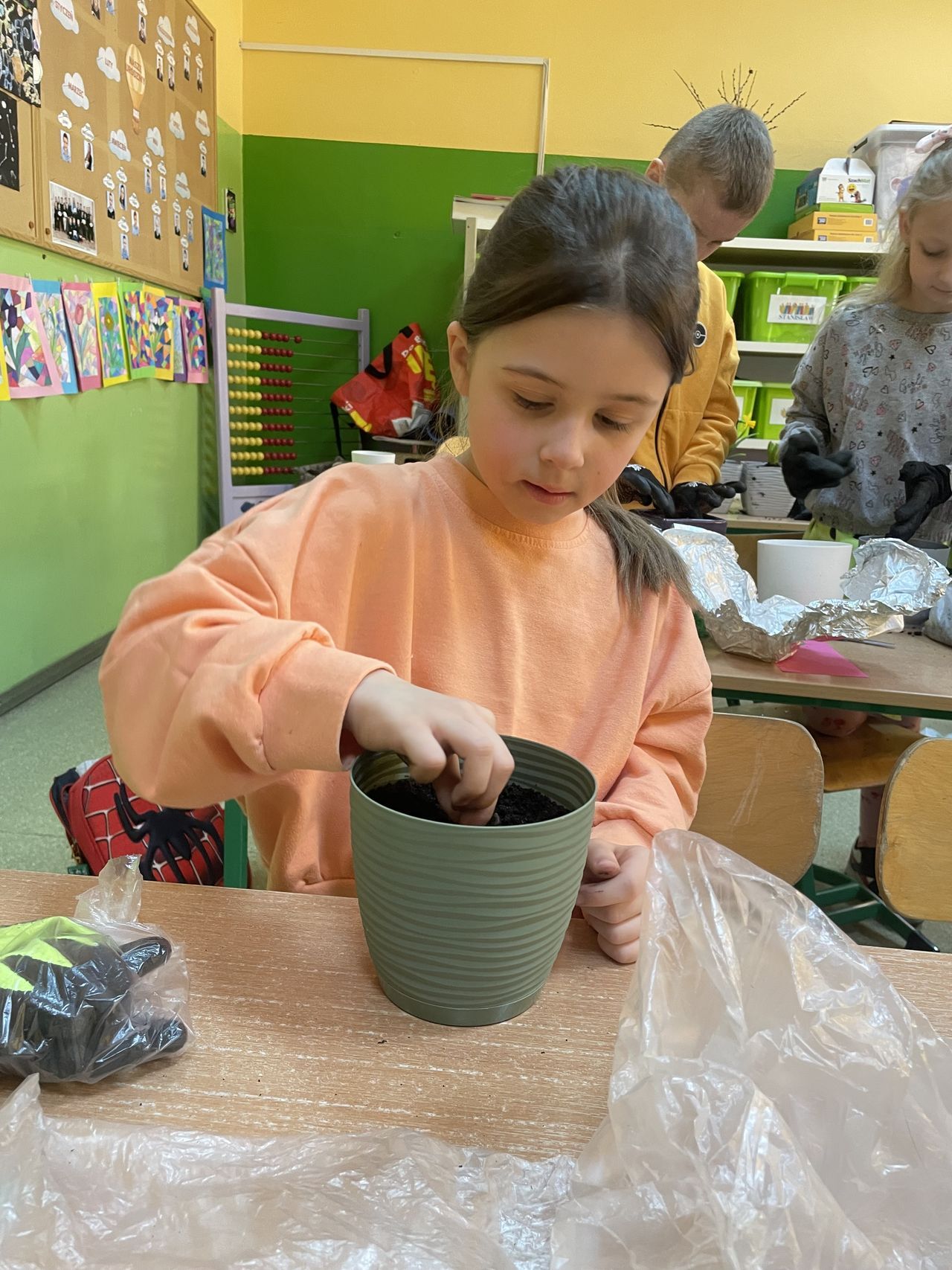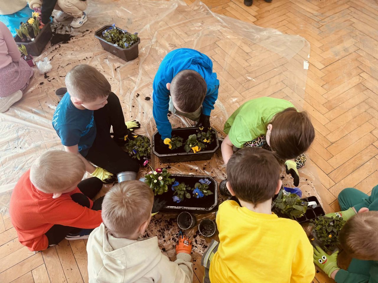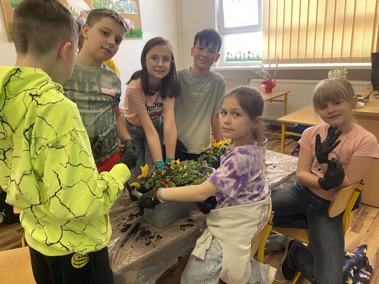 Obchody rozpoczęły się w klasach, gdzie dzieci z wielkim zaangażowaniem sadziły wiosenne kwiaty. Uczniowie poznawali zasady pielęgnacji roślin oraz uczyli się, jak dbać o przyrodę. Kolorowe doniczki i świeża zieleń wprowadziły do sal lekcyjnych prawdziwie wiosenny nastrój.
