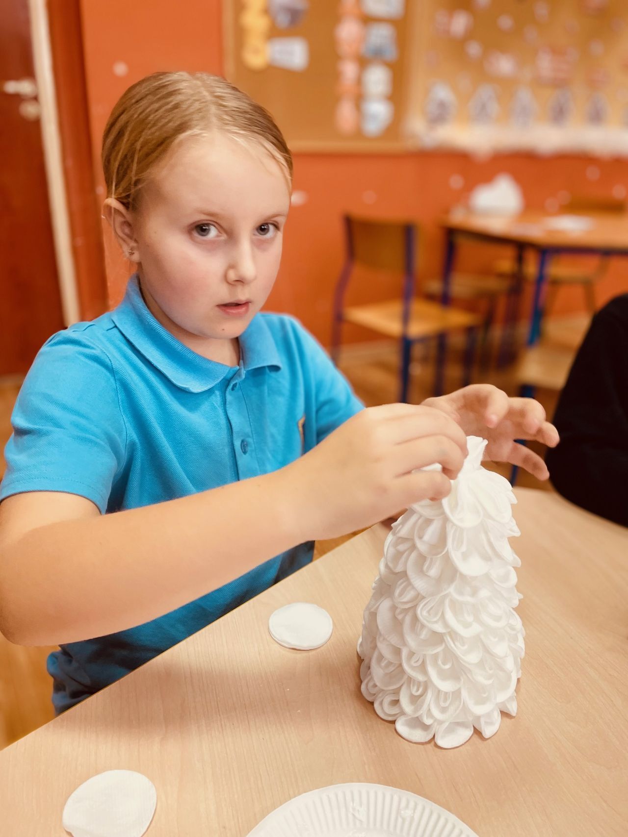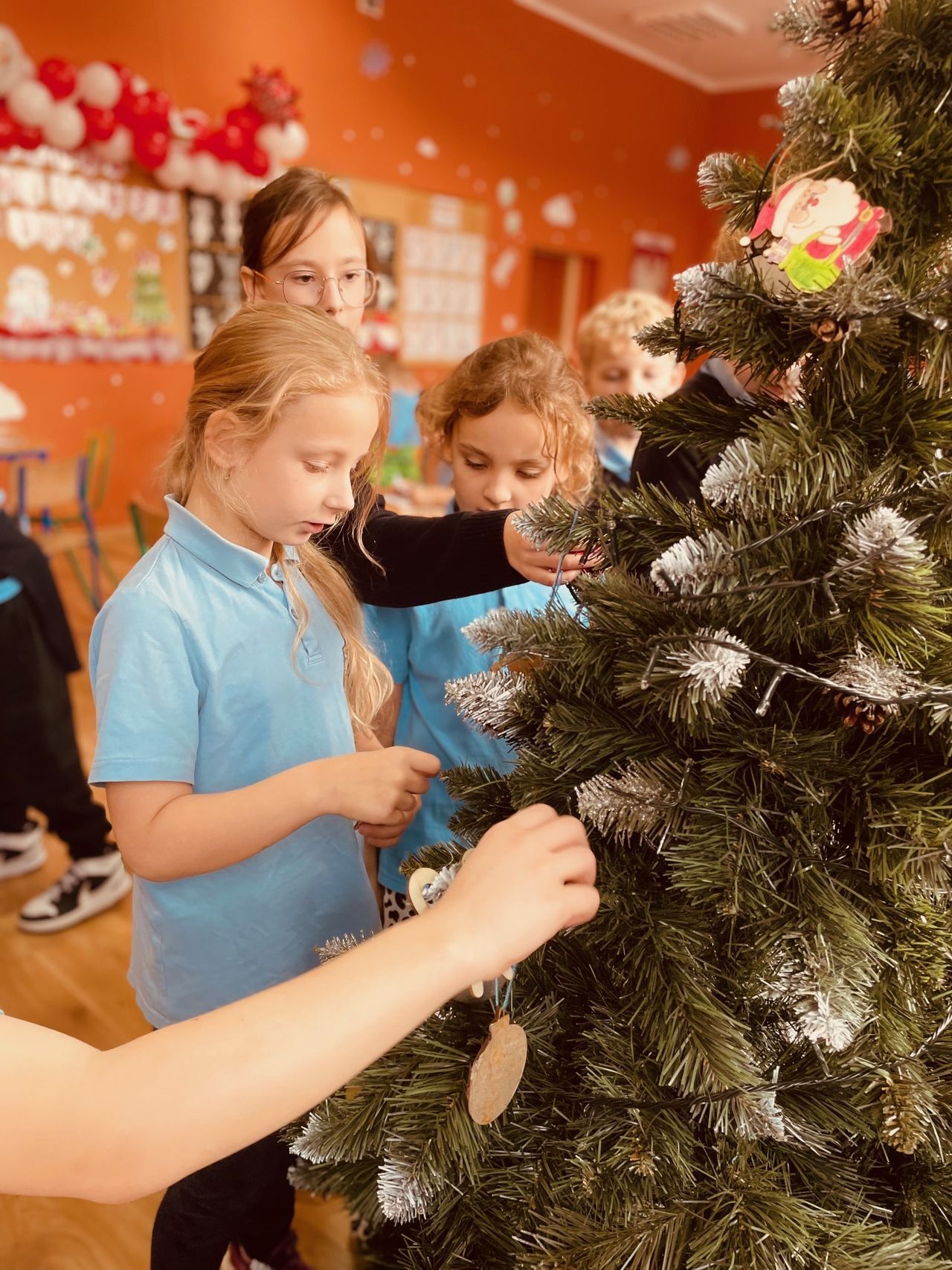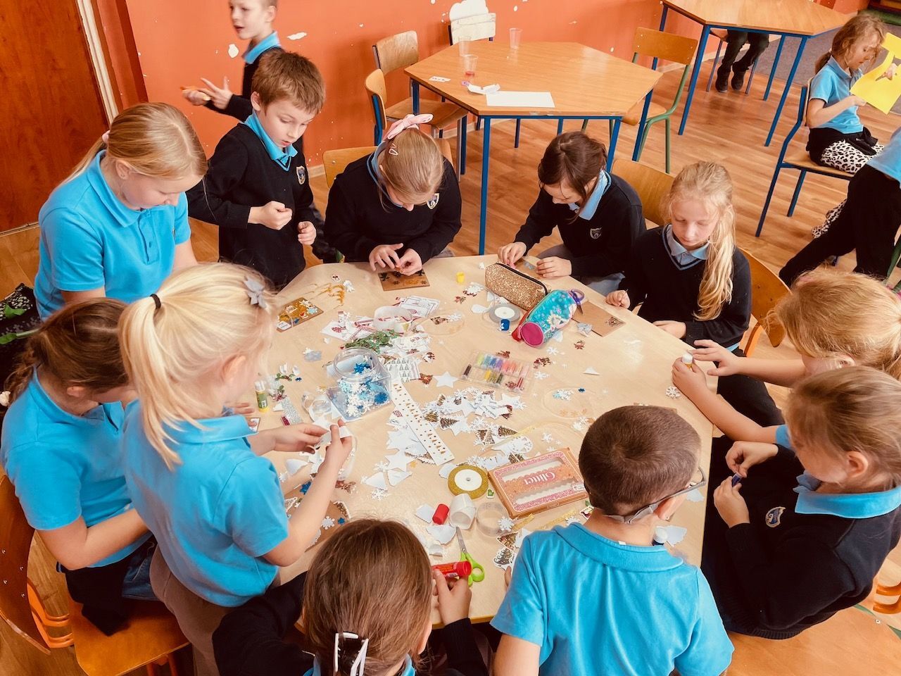Uczniowie wykonywali również bombki na choinkę oraz dekoracje, które ozdobiły świetlicę i zostały przygotowane na szkolny kiermasz świąteczny. Własnoręczne prace sprawiły, że przestrzeń nabrała prawdziwie świątecznego charakteru.