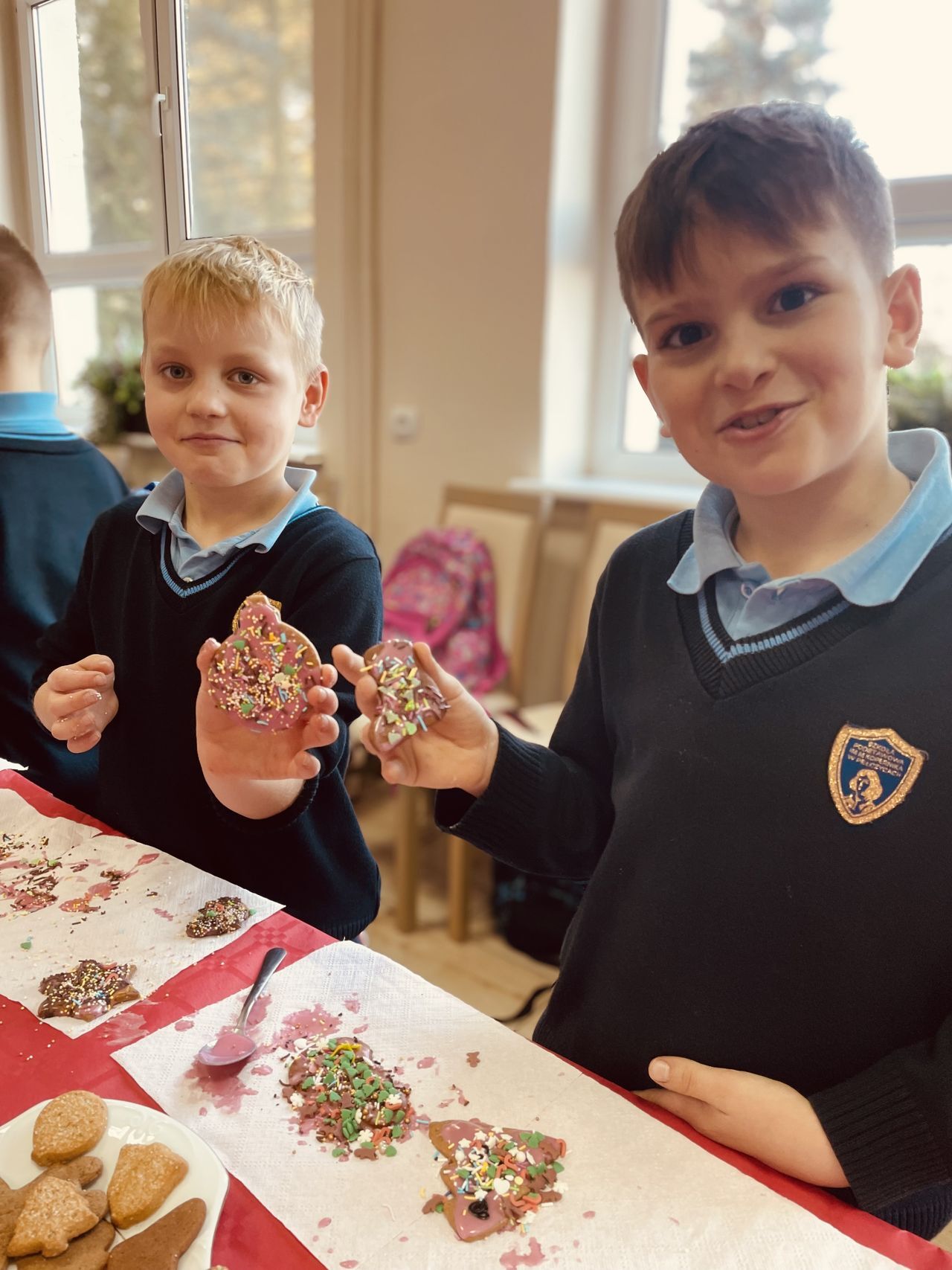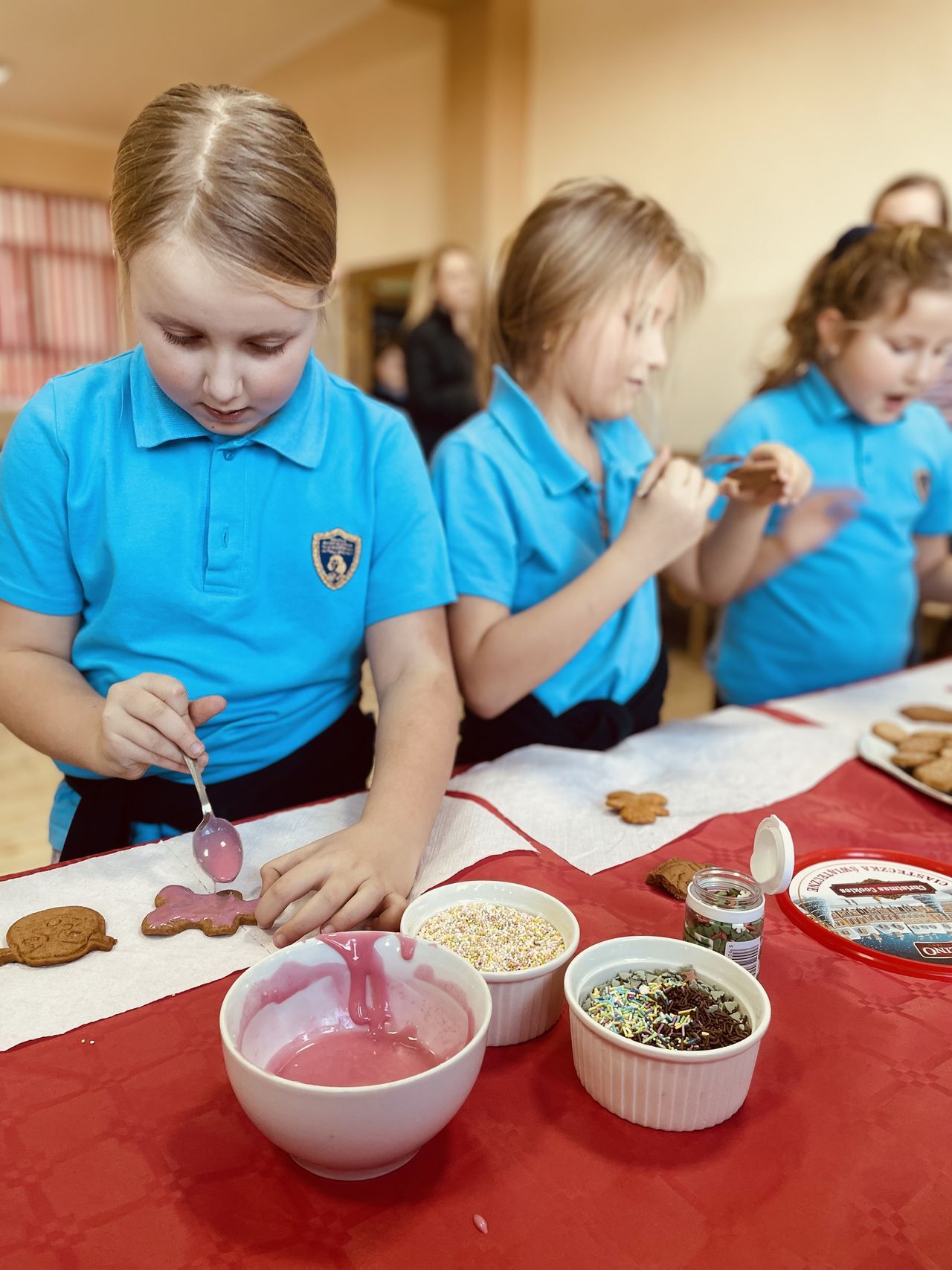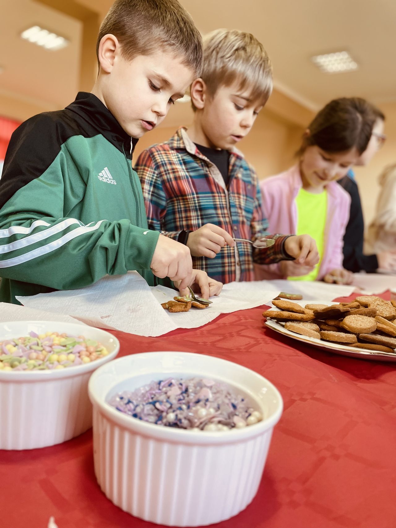 Wyjątkowym wydarzeniem były warsztaty piernikowe. Dzieci z wielkim zaangażowaniem dekorowały ciasteczka, biorąc udział w konkursie na najpiękniej udekorowany piernik. Kolorowe lukry i posypki pobudziły wyobraźnię, a wspólna zabawa dostarczyła wszystkim wiele frajdy.