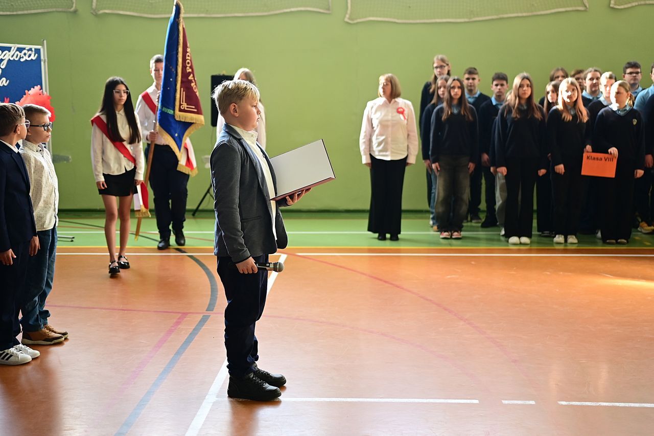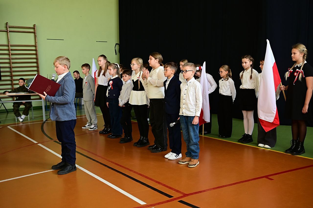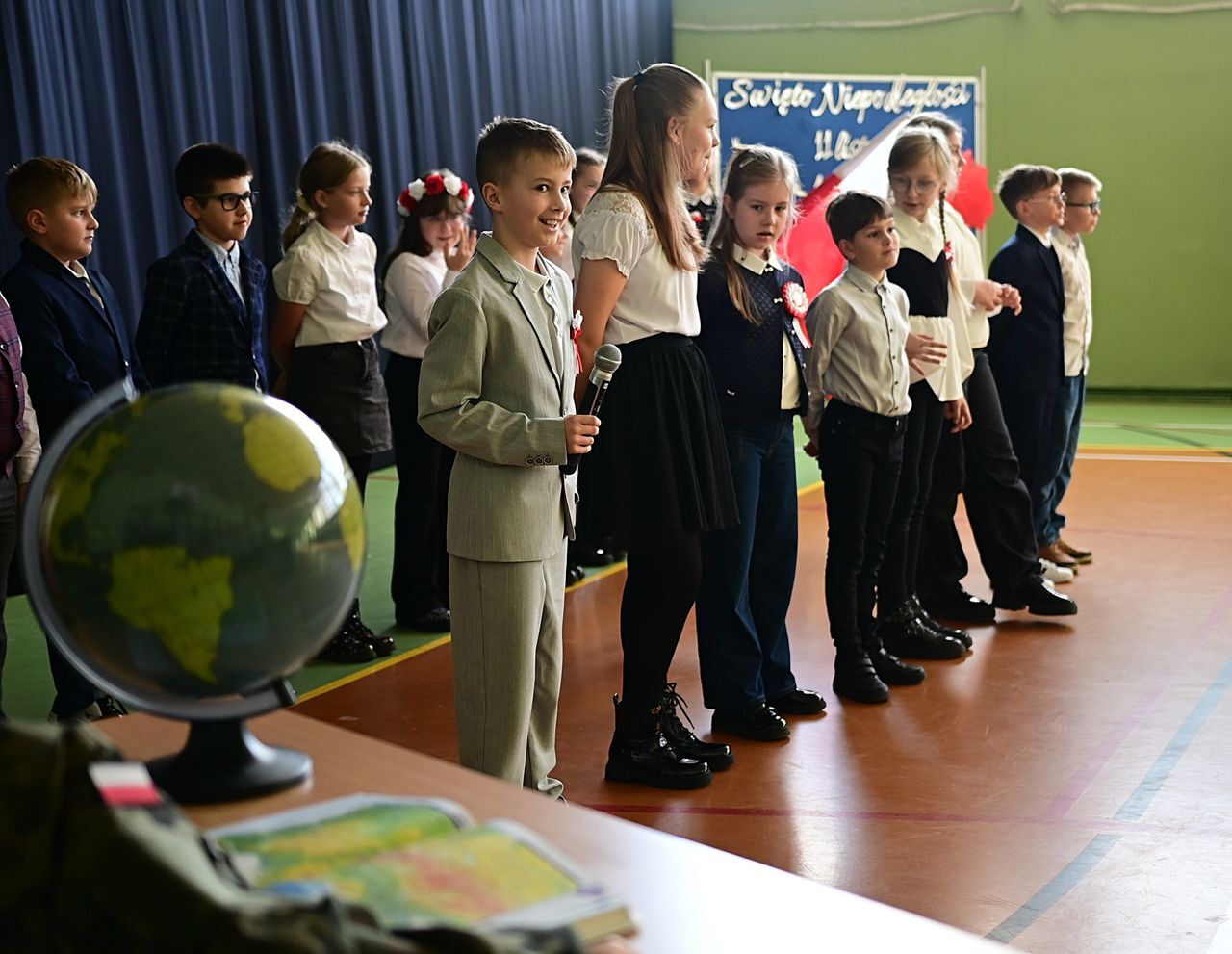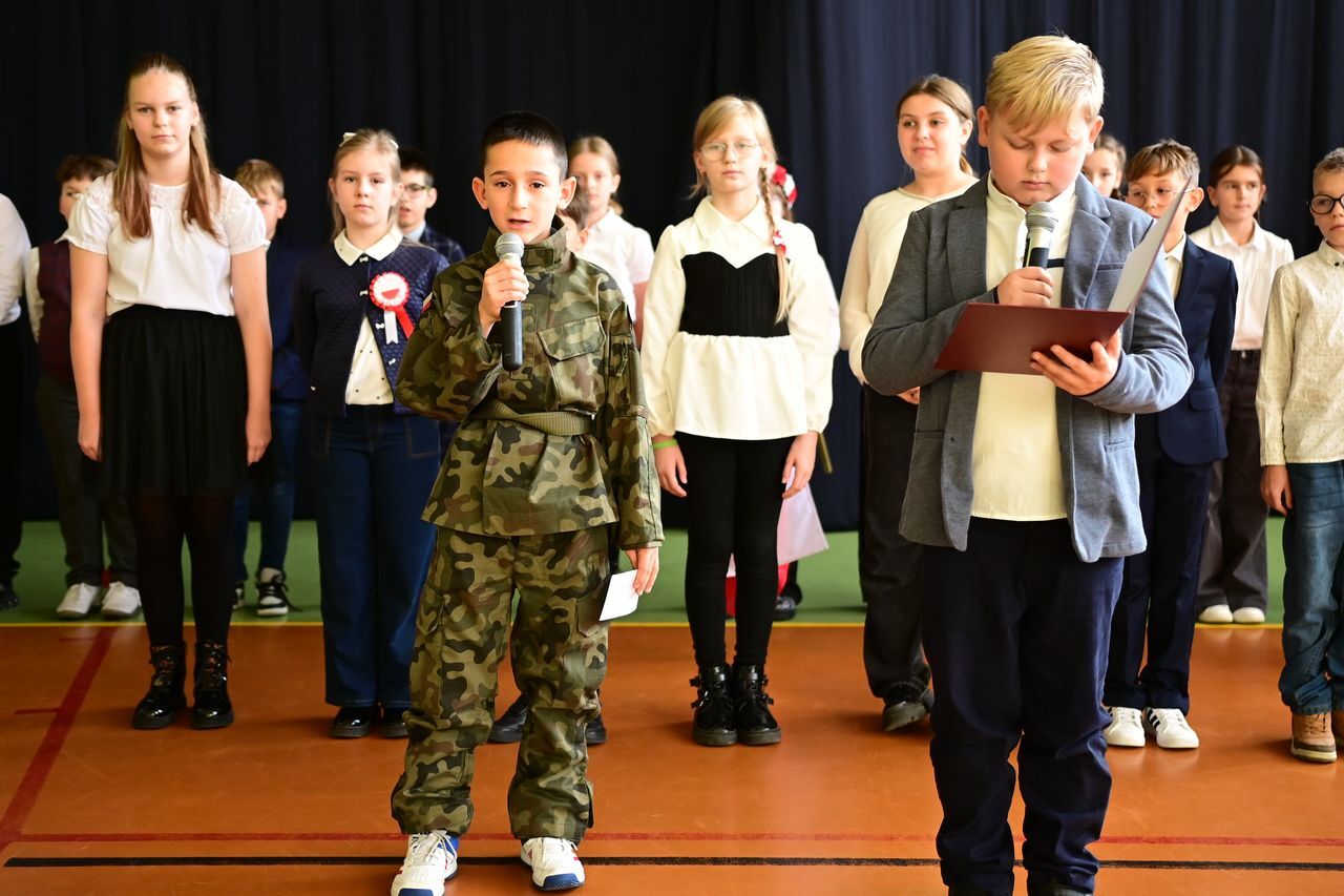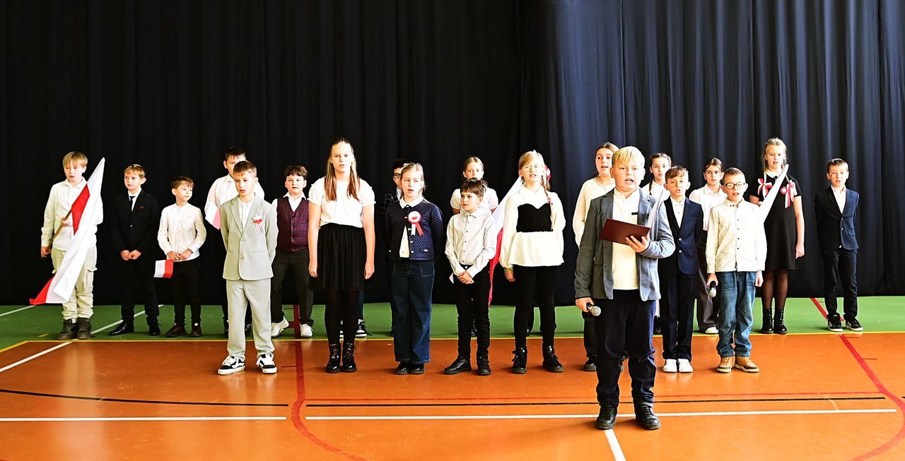 Uroczystość uświetnił montaż muzyczno-słowny przygotowany przez uczniów klasy IV a. Miłość do ojczyzny wyrażana poprzez szacunek do historii to żywa lekcja patriotyzmu.