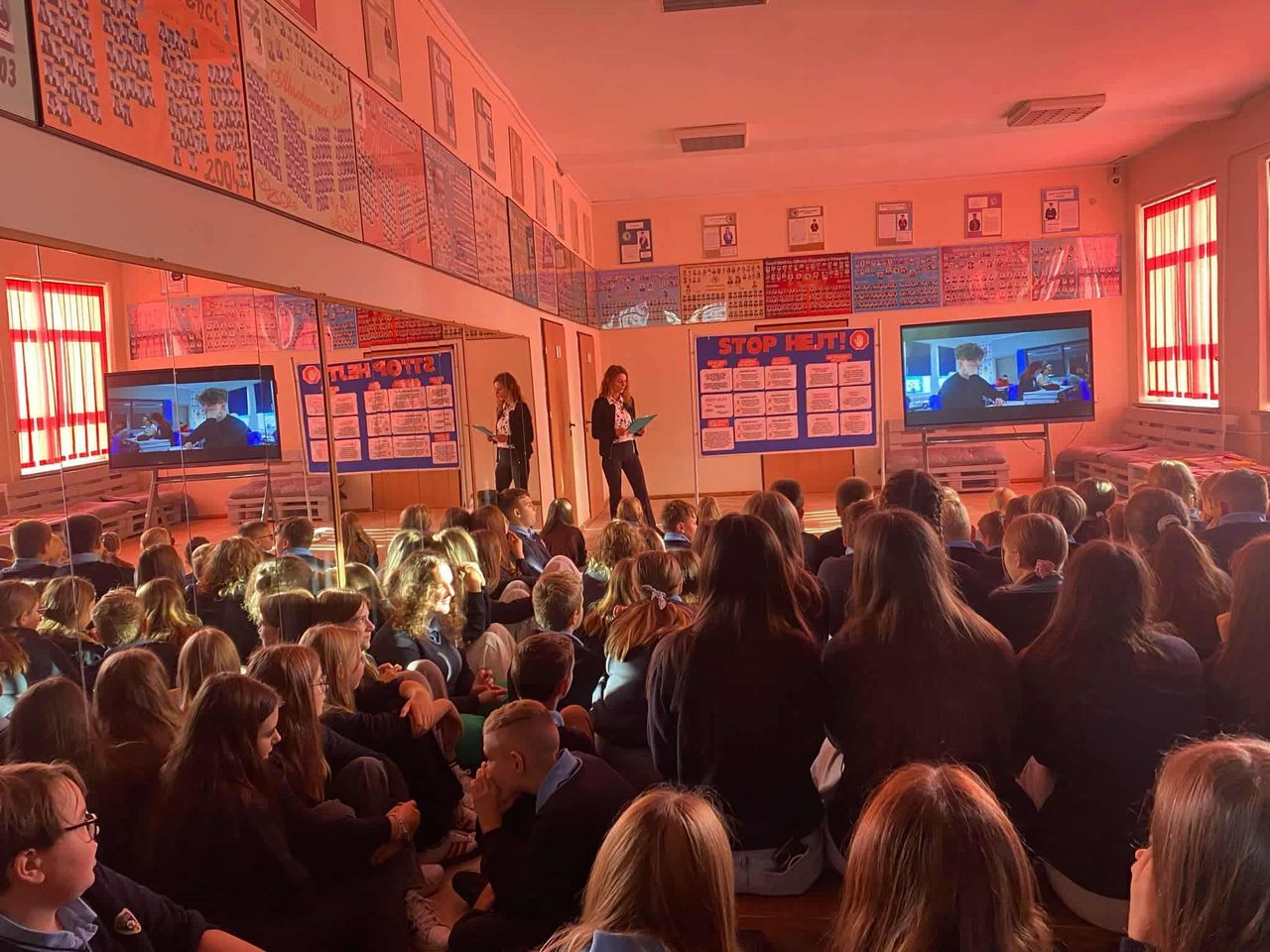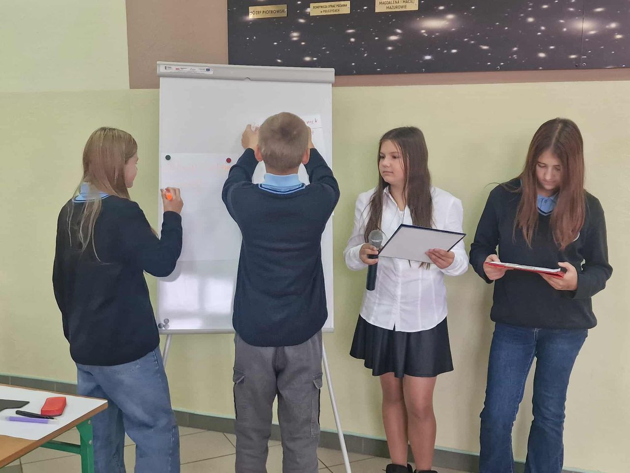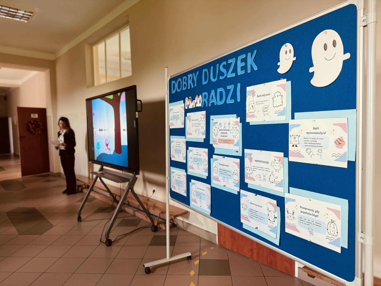 Podczas przerw uczniowie oglądali krótkie filmy dotyczące przemocy rówieśniczej. Stały się one punktem wyjścia do klasowych rozmów o emocjach, empatii i sposobach reagowania, gdy jesteśmy świadkami lub ofiarami przemocy.