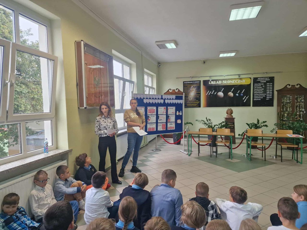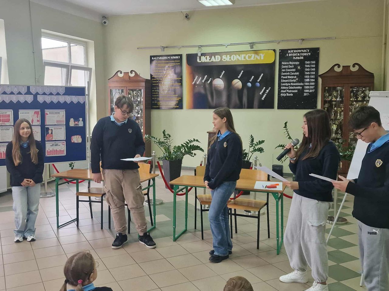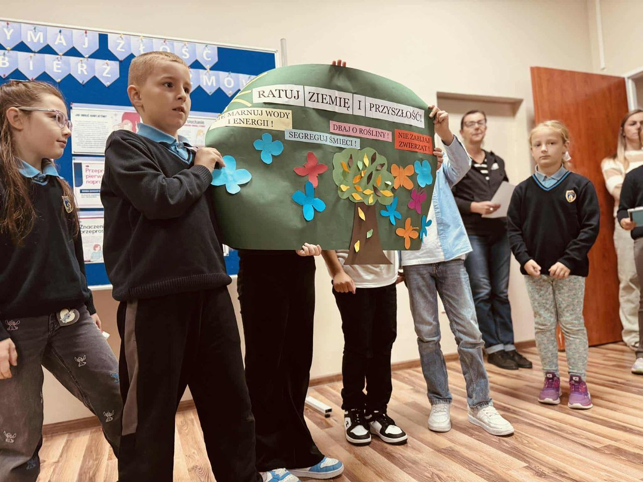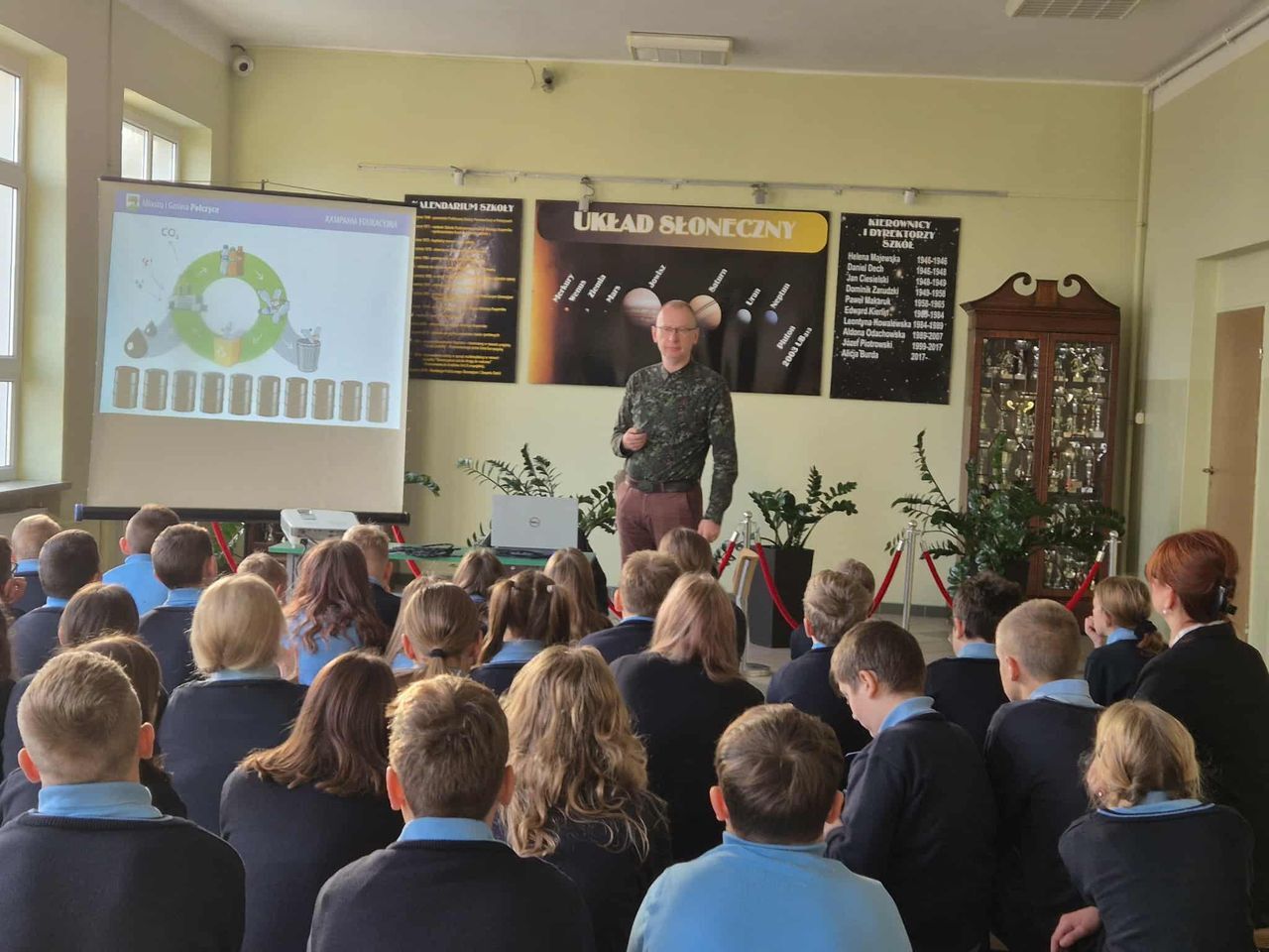 Piątek był także dniem działań ekologicznych. W szkole odbyło się spotkanie w ramach kampanii edukacyjnej na rzecz ochrony środowiska. Uczniowie uczestniczyli w prelekcji poświęconej segregacji odpadów, recyklingowi i idei gospodarki o obiegu zamkniętym, ucząc się, jak ich codzienne wybory wpływają na przyszłość naszej planety.
