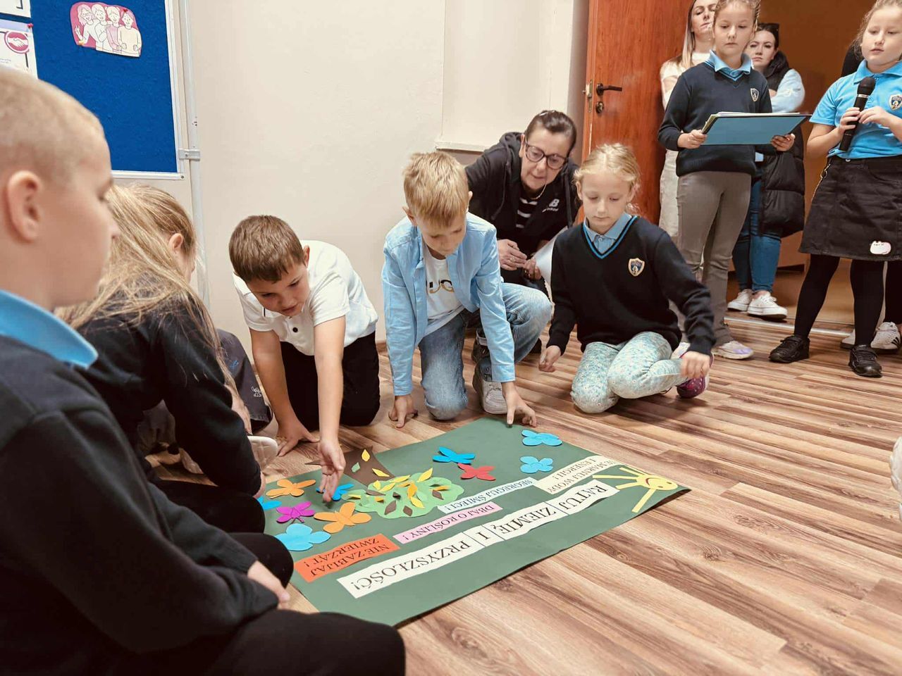 Tego dnia uczniowie, pracując w grupach, przygotowywali i odgrywali scenki pokazujące konstruktywne sposoby rozwiązywania codziennych konfliktów. Na szkolnym korytarzu pojawiło się również „Drzewko zgody” – plakat, na którym uczniowie przyklejali kolorowe listki z dobrymi słowami i pomysłami na budowanie porozumienia.