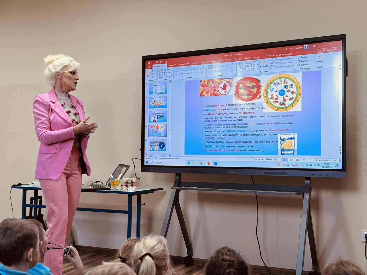 12 listopada 2025 r. w naszej szkole odbyło się spotkanie z przedstawicielką Stacji Sanitarno-Epidemiologicznej w Choszcznie. Wydarzenie zostało zorganizowane w nawiązaniu do Tygodnia Zdrowego Odżywiania, który realizowany był w klasach I–III.