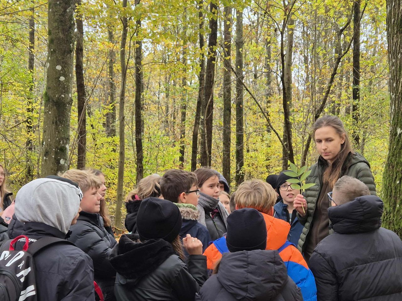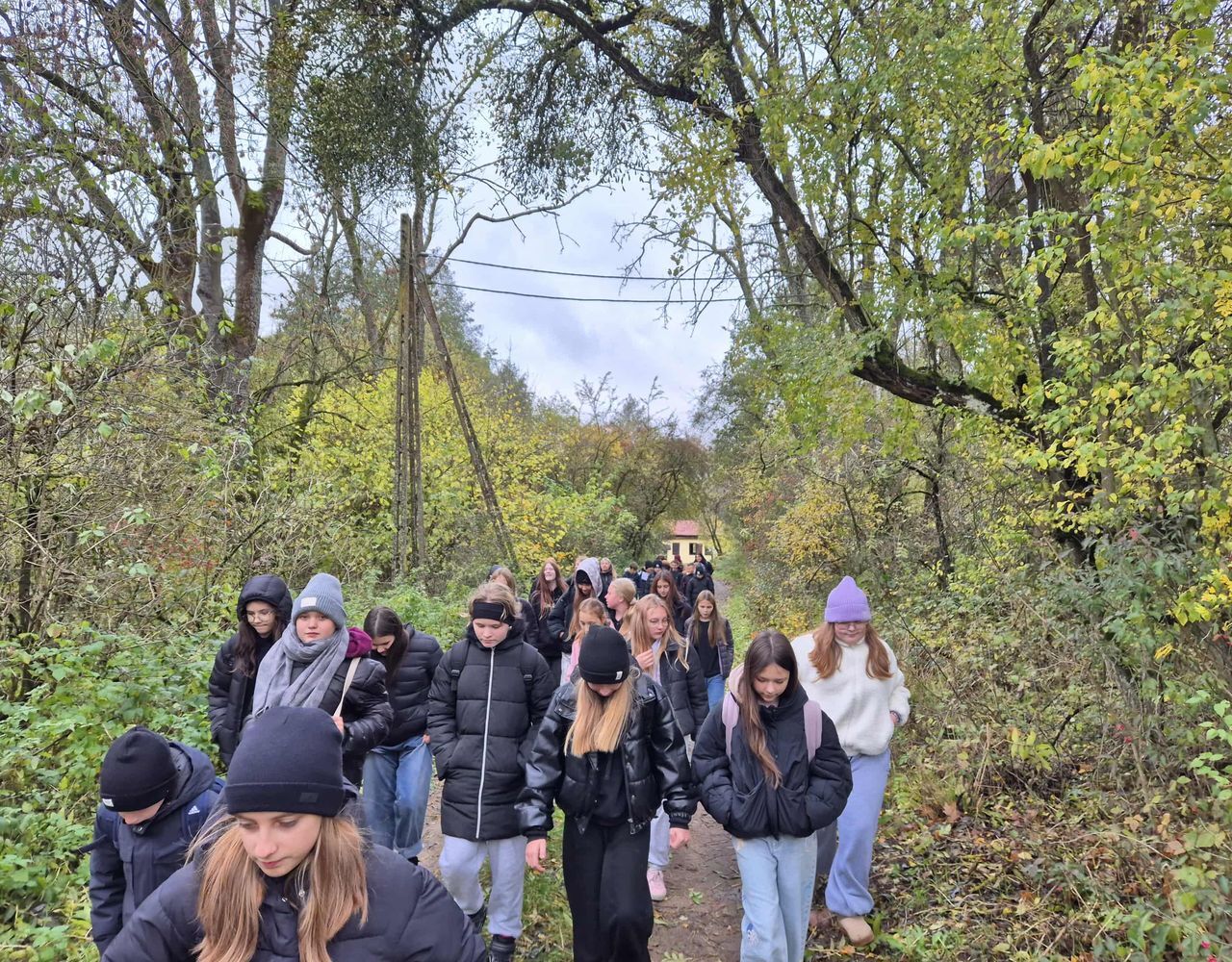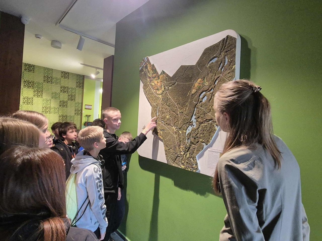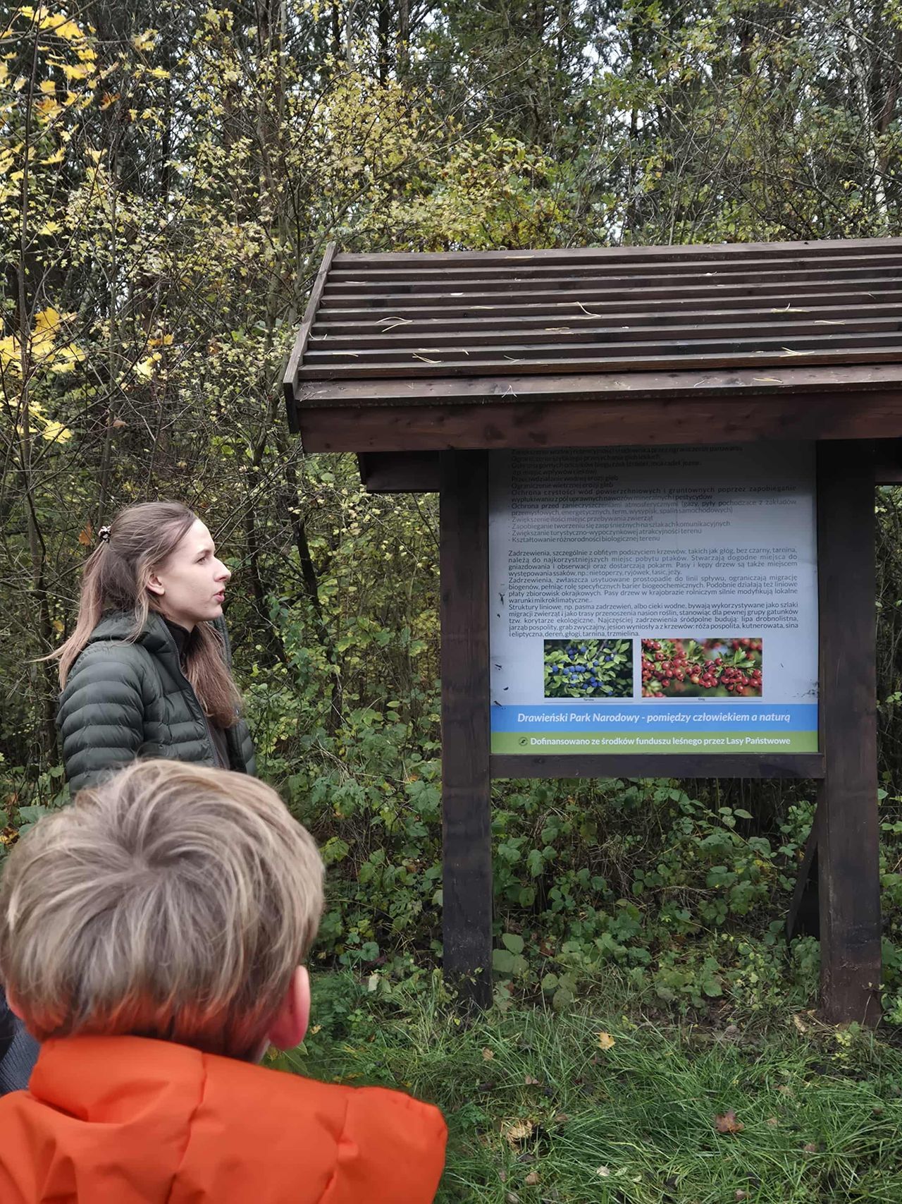 Pani przewodnik w interesujący sposób opowiadała o bogactwie flory i fauny parku, zwracając uwagę na gatunki chronione i charakterystyczne dla tego regionu. W dalszej części dnia uczniowie udali się na spacer ścieżką edukacyjną „Drawnik”, gdzie poznawali różnorodne gatunki drzew, roślin i ciekawostki dotyczące historii oraz ukształtowania terenu.