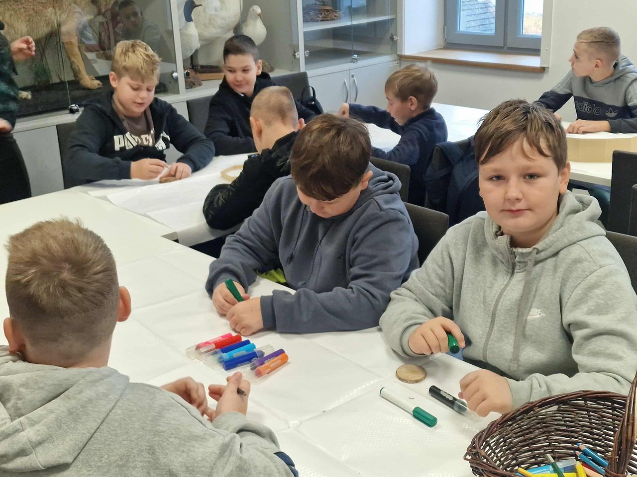 Pierwszy punkt programu – Centrum Edukacji i Turystyki – udział w ciekawych, interaktywnych zajęciach przyrodniczych. Następnie podczas warsztatów rękodzielniczych każdy mógł stworzyć własny magnes z plastra drewna — oryginalną pamiątkę z wyjazdu.