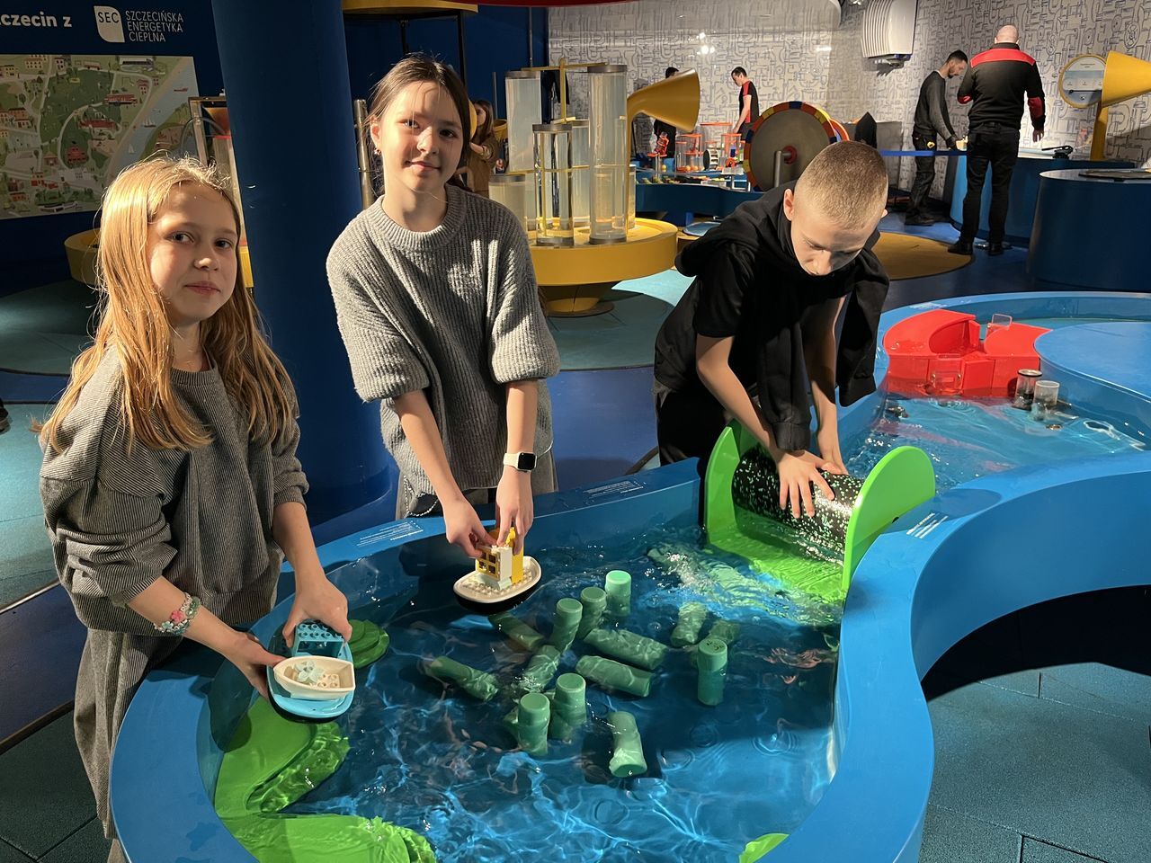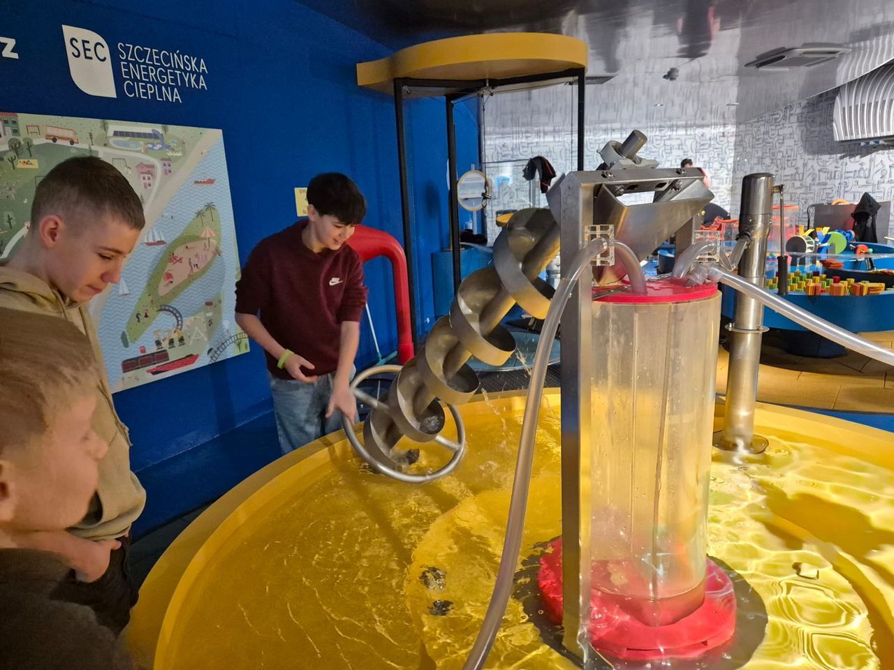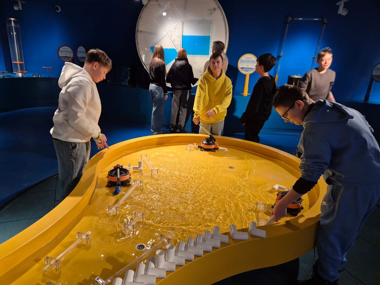 Podczas zwiedzania uczniowie poznali tajemnice wody – jej właściwości, znaczenie w życiu człowieka oraz rolę w przyrodzie i środowisku. Interaktywne stanowiska pozwalały sprawdzić, jak działa obieg wody w naturze, jak powstaje deszcz, a także jak funkcjonują różne urządzenia wykorzystujące wodę.