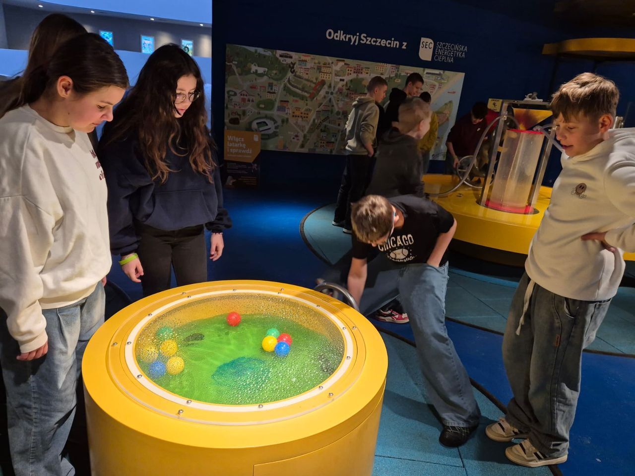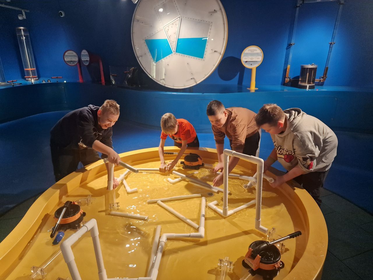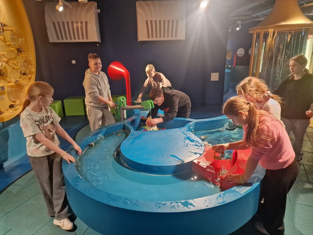 Podczas zwiedzania uczniowie poznali tajemnice wody – jej właściwości, znaczenie w życiu człowieka oraz rolę w przyrodzie i środowisku. Interaktywne stanowiska pozwalały sprawdzić, jak działa obieg wody w naturze, jak powstaje deszcz, a także jak funkcjonują różne urządzenia wykorzystujące wodę.