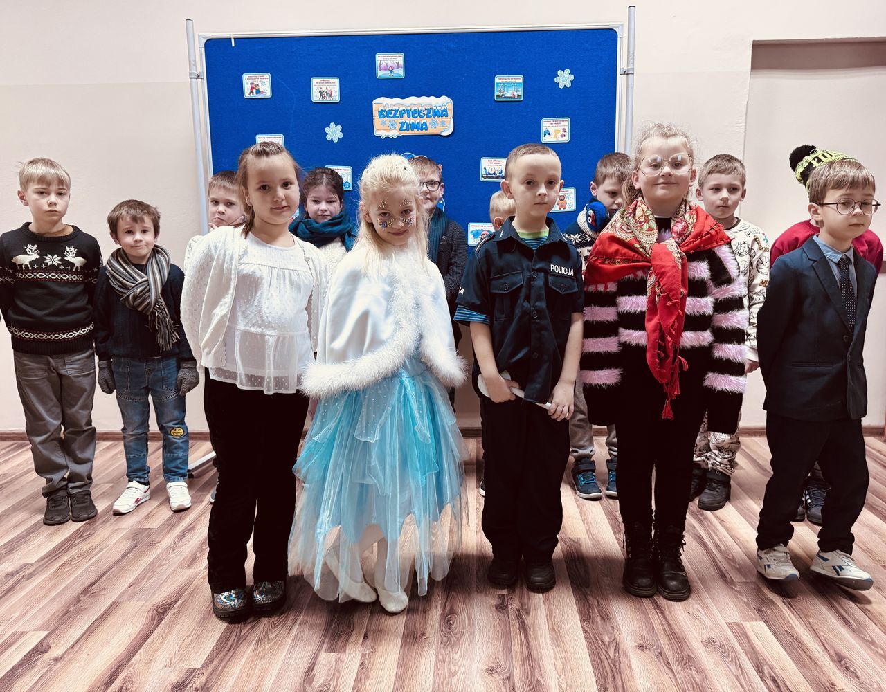 Uczniowie klasy pierwszej udowodnili, że o bezpieczeństwie można mówić krótko, mądrze i z uśmiechem. W swoim przedstawieniu dla starszych kolegów przypomnieli, jak bezpiecznie spędzać ferie — były dobre rady, zabawne scenki i jasny przekaz: Ferie mają być udane, a nie niebezpieczne.