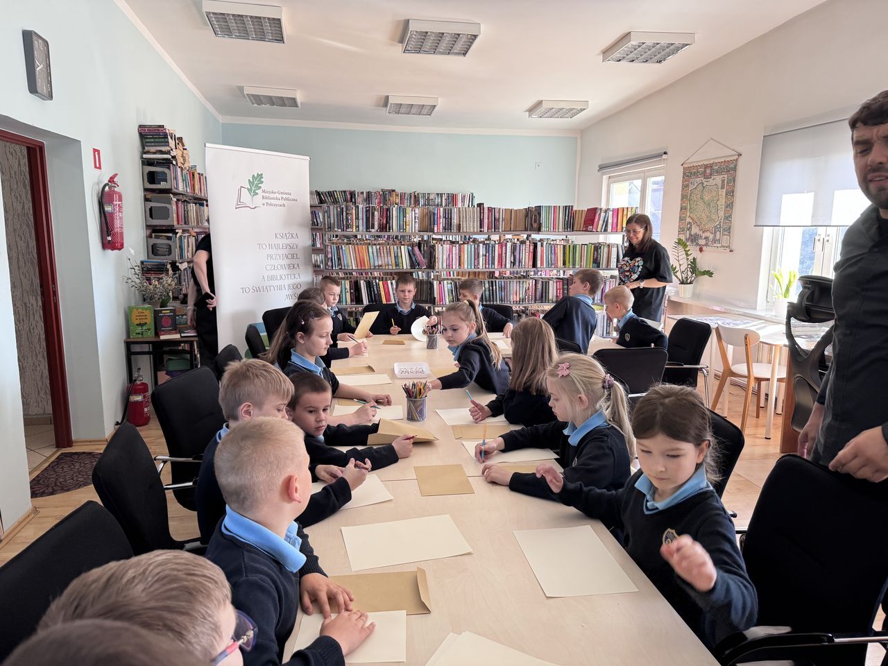 W przededniu Światowego Dnia Książki i Praw Autorskich uczniowie klasy I Szkoły Podstawowej im. Mikołaja Kopernika w Pełczycach odwiedzili (zresztą nie po raz pierwszy) Miejsko-Gminną Bibliotekę Publiczną w Pełczycach, gdzie wzięli udział w warsztatach „Kapsuły czasu” w ramach akcji „Mała Książka w Drodze” Instytutu Książki.