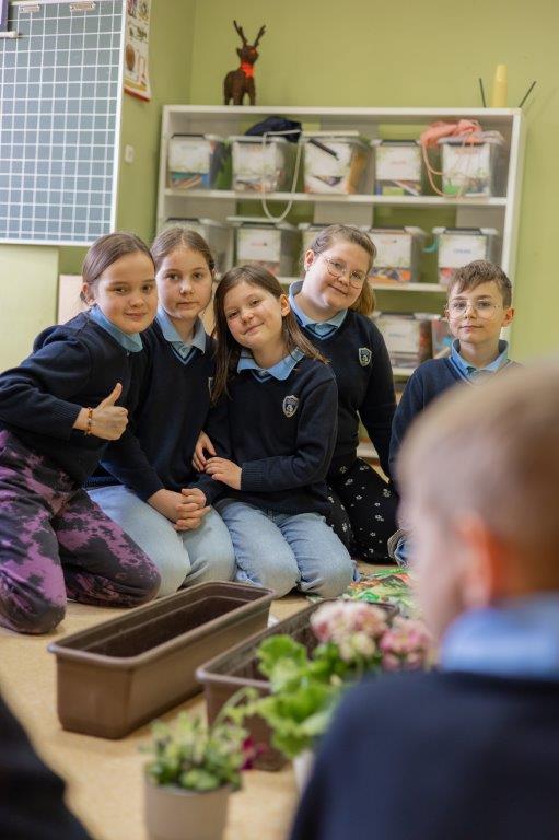 Uczniowie klas I-III uczestniczyli w działaniach projektowych. Podczas lekcji przyrodniczych w terenie dzieci wykonywały przyrodnicze obrazy z zebranych w parku roślin, układały hasła z darów przyrody. Uczniowie zgłębiali swoją wiedzę na temat smogu w ramach realizowanego projektu "Czyste powietrze". W ostatnim dniu projektowym każda klasa wykonała makiety pod hasłem "MOJE MIASTO BEZ SMOGU". Z dużym zaangażowaniem mali ogrodnicy sadzili kwiaty, które sprawiły, że Ziemia stała się bardziej kolorowa i jeszcze piękniejsza.
