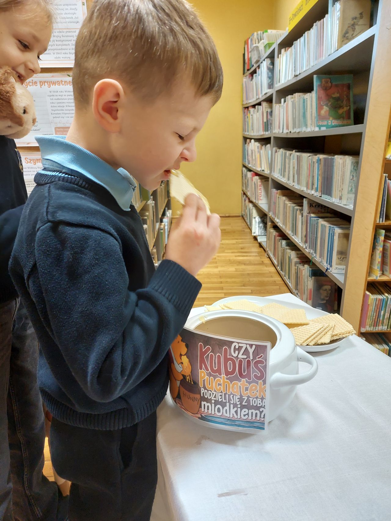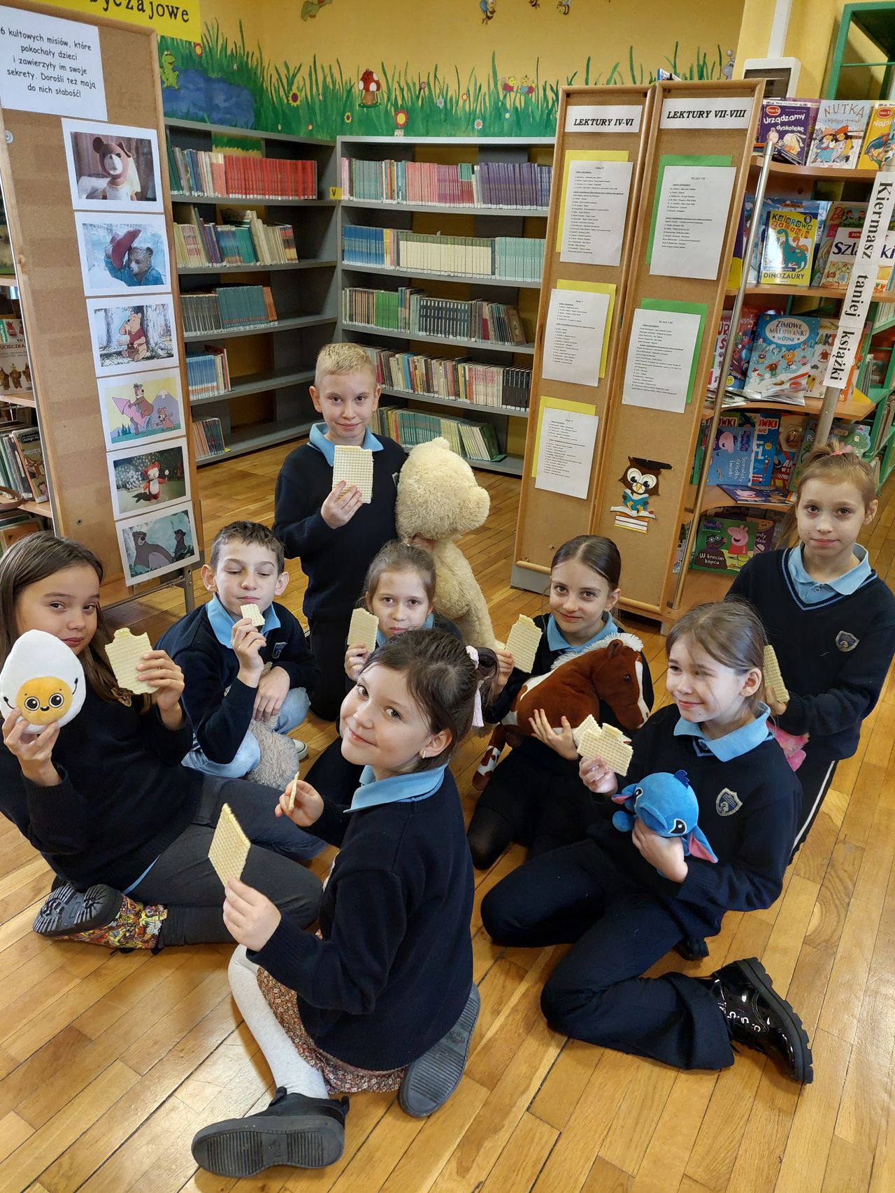 W dniach 23-24.11 obchodziliśmy w naszej szkole Światowy Dzień Pluszowego Misia. Z tej okazji wszyscy młodsi wielbiciele tej sympatycznej dziecięcej przytulanki spotkali się w bibliotece szkolnej. Na początku dzieci dowiedziały się jak to się stało, że pluszowy miś ma swoje święto. Odgadywały również zagadki o misiach i niedźwiadkach znanych z książek oraz animowanych bajek. Przerwą w zajęciach była misiowa gimnastyka ze swoim przyjacielem do muzyki „Pluszowy miś”. Następnie dzieci poznały zwyczaje prawdziwego misia - niedźwiedzia brunatnego żyjącego w polskich górach oraz niedźwiadków z różnych stron świata. Wszystko za sprawą przedstawienia kamishibai „Misiowe wiadomości - niedźwiedź brunatny”. Po wysłuchaniu sprawdziły swoją pamięć w quizie „Co wiem o misiach?”. Z okazji misiowego święta uczniowie wykonywali przestrzenne misie, kodowanie na kartce papieru oraz macie, a także kolorowali ilustracje. Na zakończenie spotkania dzieci otrzymały słodki poczęstunek, czyli to, co jest przysmakiem większości misiów – miodek, który podano im na waflu. Z niecierpliwością czekamy więc na kolejne spotkanie, bo wszyscy kochamy misie.