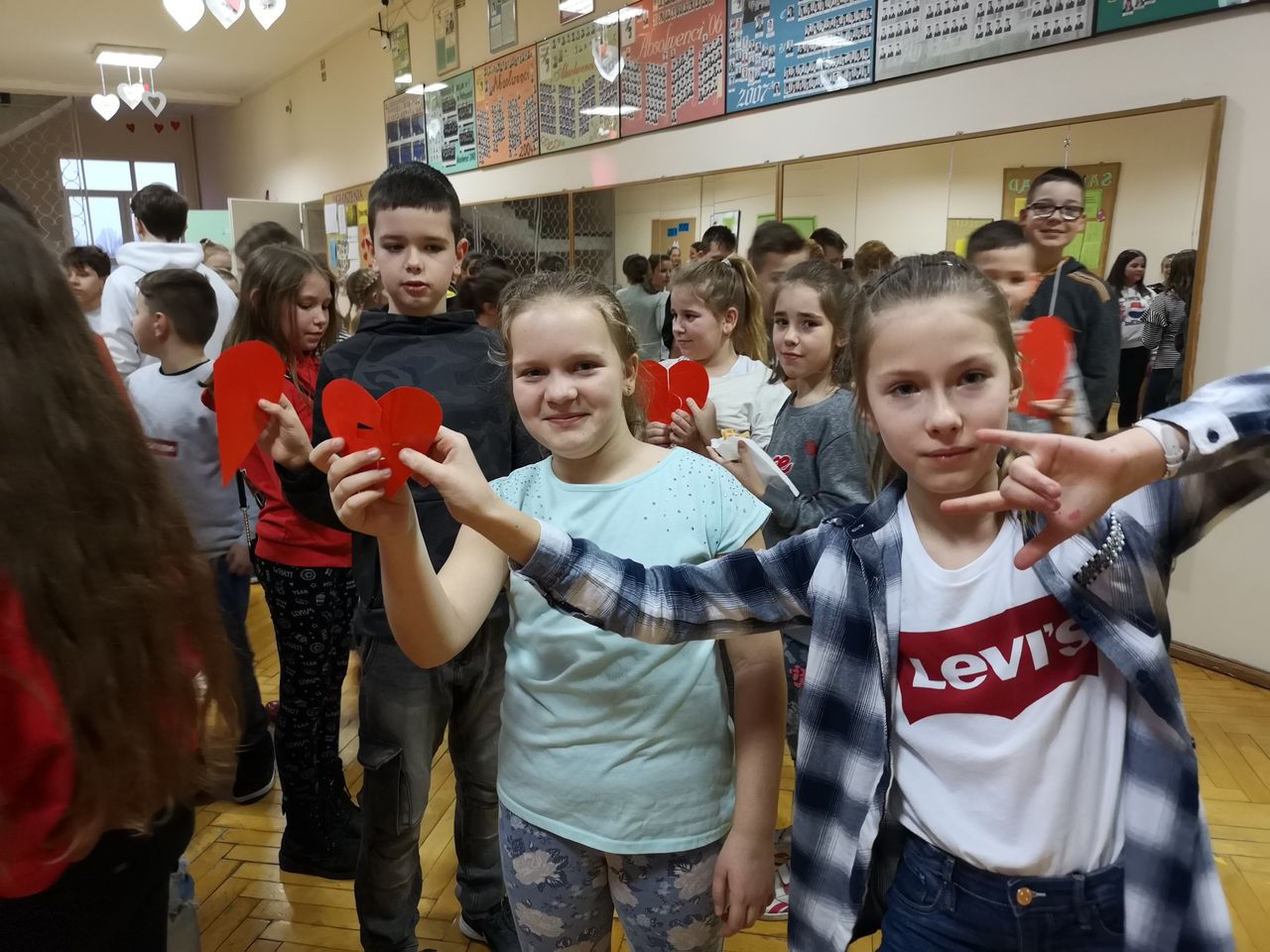We wtorek, 19 lutego odbyła się także zabawa walentynkowa dla uczniów klas IV – VI. Uatrakcyjniły ją konkursy i zabawy z nagrodami. Nie zabrakło gofrów serwowanych przez panią Bożenę Matuszewską i panią Barbarę Płaksej z Rady Rodziców oraz słodkich upominków od Samorządu Uczniowskiego. Zwycięzcy ostatniego konkursu otrzymali wielkie serduszkowce lizaki.
